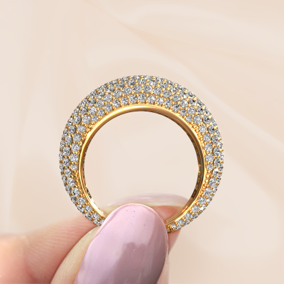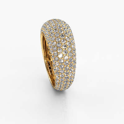 Cette bague Pavé pour femmes porte le nom Lyndia. Cette bague est forgée en or jaune 14 Carat et est sertie d'un diamants de 2.769 crt. Dans cette bague forgée en or jaune, de magnifiques diamants ont été sertis, comme une rangée infinie faite de diamants. Les pierres précieuses sont soigneusement choisies et serties avec la plus grande précision par notre orfèvre. Parce que ce n'est que lorsque les diamants sont sertis les uns à côté des autres que la bague se mettra à briller. Toujours et encore, au cours du processus traditionnel de forgeage et de polissage, l'orfèvre maintient votre bague à la lumière jusqu'à ce qu'il détienne enfin la bague parfaite pour femmes. Composée par vous et spécialement créé pour vous !Que pensez-vous de cette bague exclusives en or jaune ? Vous pouvez créer cette bague via notre configurateur. Votre bague personnelle est par la suite fabriquée à la main par nos orfèvres. Le choix du métal précieux et des pierres précieuses peut être entièrement personnalisé. Avez-vous certaines idées pour votre bague, mais vous ne pouvez pas trouver nos options qui leur correspondent ? Alors faites-nous le savoir. Nous fabriquons votre bague personnelle entièrement selon vos souhaits.Nos orfèvres ne fabriqueront votre bague qu'une fois que vous l'aurez commandée. Nous ne faisons pas de stock. L'avantage de cela est que nous n'avons pas à inclure les frais de stockage dans nos prix, et nous pouvons donc vous offrir des bijoux à un prix très bas.Pour vous faciliter la tâche, vous pouvez facilement nous retourner tout bijou commandé dans les 30 jours suivant la livraison.. Bien entendu, nous sommes heureux de vous aider à créer votre bague de rêve Lyndia. Si vous avez des questions, n'hésitez surtout pas à nous contacter !