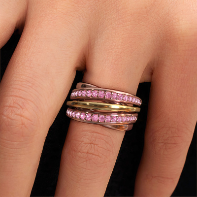 Cette bague unique forgée en or rose, que nous avons appelée Marylouise 2, est un pur travail d’art ! La bague est faite d'or 14 Carat et est sertie d'un saphir rose ronds de 1.2 mm. Les plus petits détails ont été fabriqués avec beaucoup de patience et de passion par notre orfèvre. Ce véritable travail artisanal nécessite un œil expert et une main compétente pour concevoir une bague avec la plus grande précision. Et c'est précisément ce qui enthousiasme nos orfèvres ! Les beaux saphirs roses sont mis en place de manière spéciale, de telle sorte à ce qu'ils sortent encore mieux. Cela donne aux bagues pour femmes une allure supplémentaire. La bague est unique en raison de la pierre précieuse naturelle que nous avons spécialement sélectionnée pour cette bague Marylouise 2. Et en choisissant votre métal précieux, vous pouvez créer vous-même une bague unique. Une fois que vous avez conçu votre bague Marylouise 2 avec notre configurateur, nos orfèvres se mettent à sa fabrication pour vous. La fabrication se fait de manière traditionnelle avec passion et soin. De plus, nous travaillons avec des matériaux extraits de façon équitable. Si vous voulez changer quelque chose, vous pouvez le faire avec notre configurateur. Si vous avez des souhaits spécifiques pour votre bague Marylouise 2, mais si vous ne voyez pas une option qui leur corresponde dans le configurateur, veuillez contacter notre équipe de designers expérimentés.En utilisant nos techniques modernes, nous sommes en mesure de concevoir et de personnaliser les bijoux de la plus haute qualité avec le plus grand soin pour vous. Nos bagues ont toujours un prix inférieur de 30% à celles des autres bijoutiers. Nous fabriquons des bagues à la commande afin de ne pas avoir à garder un stock important. Si vous avez un certain budget, nous serons ravis de vous conseiller tout en le respectant.Pour vous faciliter la tâche, vous pouvez facilement nous retourner tout bijou commandé dans les 30 jours suivant la livraison. Avez-vous des questions ? Souhaitez-vous modifier un design existant avec vos propres idées ? Vous nous donc aussi contacterez. Notre équipe de professionnels se fera un plaisir de vous conseiller dans la création de votre bijou de rêve style exclusive.