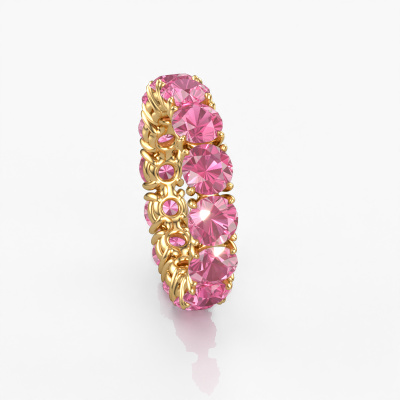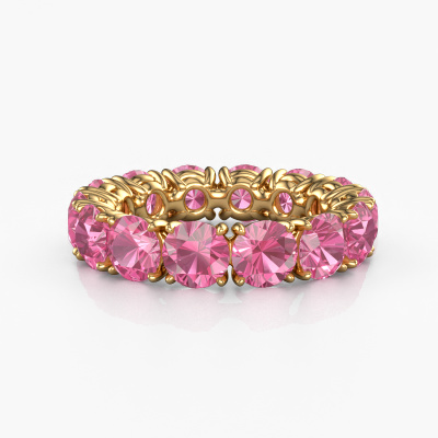 Cette bague porte le nom Vivienne 5.0 et le type de bague s'appelle une bague éternité. Par conséquent, toutes les pierres précieuses sont serties autour de l'anneau de la bague. Cette bague forgée en or jaune 14 Carat a tout autour des petits saphirs roses de 5 mm. Les saphirs roses brillants sont tous d'identique et sont sertis dans l'anneau autour de la bague. Tous les saphirs roses sont soigneusement sélectionnés, précisément parce qu'ils doivent être aussi identiques que possible pour créer le meilleur résultat possible sur cette bague. Notre orfèvre place tous les saphirs roses très précisément à la main, ce qui permet de renforcer l'effet éternité de la bague. La passion est ce qui anime nos orfèvres : créer la bague parfaite. Voici la beauté de notre métier ! Le résultat est une belle bague forgée en or jaune exclusives dans laquelle la rangée de saphirs roses semble continuer sans fin. Le symbole parfait pour votre amour infini pour elle ! Voici quelque chose de particulier ! En utilisant nos techniques modernes, nous sommes en mesure de concevoir et de personnaliser les bijoux de la plus haute qualité avec le plus grand soin pour vous. Nos bagues ont toujours un prix inférieur de 30% à celles des autres bijoutiers. Nous fabriquons des bagues à la commande afin de ne pas avoir à garder un stock important. Si vous avez un certain budget, nous serons ravis de vous conseiller tout en le respectant.De nouveaux modèles de bijoux sont ajoutés à notre collection en ligne quotidiennement. Notre équipe de designers passionnés s'efforce de créer des designs extraordinaires et variés. Avez-vous vu une bague qui vous plait ? N'hésitez pas à nous contacter. Grâce à un bon rapport qualité / prix, nous vous ferons une offre que vous ne pourrez pas refuser !Pour vous faciliter la tâche, vous pouvez facilement nous retourner tout bijou commandé dans les 30 jours suivant la livraison.