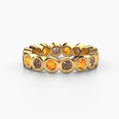 Cette bague superposable porte le nom Edwina 3 et le type de bague s'appelle une bague éternité. Par conséquent, toutes les pierres précieuses sont serties autour de l'anneau de la bague. Cette bague superposable forgée en or jaune 14 Carat a tout autour des petits diamants bruns de 0.80 crt. Les diamants bruns brillants sont tous d'identique et sont sertis dans l'anneau autour de la bague superposable. Tous les diamants bruns sont soigneusement sélectionnés, précisément parce qu'ils doivent être aussi identiques que possible pour créer le meilleur résultat possible sur cette bague. Notre orfèvre place tous les diamants bruns très précisément à la main, ce qui permet de renforcer l'effet éternité de la bague. La passion est ce qui anime nos orfèvres : créer la bague parfaite. Voici la beauté de notre métier ! Le résultat est une belle bague forgée en or jaune tendances dans laquelle la rangée de diamants bruns semble continuer sans fin. Le symbole parfait pour votre amour infini pour elle ! Voici quelque chose de particulier ! En combinant les dernières techniques modernes, associées à une fabrication ancienne, nous sommes en mesure de fabriquer nos bagues dans notre propre studio. Chaque bijou est fabriqué sur commande. Ceci est avantageux car nous sommes en mesure de vous proposer un prix que vous ne trouverez nulle part ailleurs.Notre équipe de designers talentueux et passionnés ajoute chaque jour de nouveaux modèles bagues à notre collection en ligne. Notre objectif est de pouvoir vous offrir une grande variété de bijoux. N'hésitez pas à demander un devis si vous avez des souhaits spécifiques pour votre bague. Nous garantissons de vous faire une offre que vous ne pourrez pas refuser.Pour vous faciliter la tâche, vous pouvez facilement nous retourner tout bijou commandé dans les 30 jours suivant la livraison.