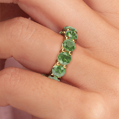 Cette bague superposable porte le nom Michelle full 5.0 et le type de bague s'appelle une bague éternité. Par conséquent, toutes les pierres précieuses sont serties autour de l'anneau de la bague. Cette bague superposable forgée en or jaune 14 Carat a tout autour des petits vert tourmaline de 5 mm. Les vert tourmaline brillants sont tous d'identique et sont sertis dans l'anneau autour de la bague superposable. Tous les vert tourmaline sont soigneusement sélectionnés, précisément parce qu'ils doivent être aussi identiques que possible pour créer le meilleur résultat possible sur cette bague. Notre orfèvre place tous les vert tourmaline très précisément à la main, ce qui permet de renforcer l'effet éternité de la bague. La passion est ce qui anime nos orfèvres : créer la bague parfaite. Voici la beauté de notre métier ! Le résultat est une belle bague forgée en or jaune exclusives dans laquelle la rangée de vert tourmaline semble continuer sans fin. Le symbole parfait pour votre amour infini pour elle ! Voici quelque chose de particulier ! En combinant les dernières techniques modernes, associées à une fabrication ancienne, nous sommes en mesure de fabriquer nos bagues dans notre propre studio. Chaque bijou est fabriqué sur commande. Ceci est avantageux car nous sommes en mesure de vous proposer un prix que vous ne trouverez nulle part ailleurs.De nouveaux modèles de bijoux sont ajoutés à notre collection en ligne quotidiennement. Notre équipe de designers passionnés s'efforce de créer des designs extraordinaires et variés. Avez-vous vu une bague qui vous plait ? N'hésitez pas à nous contacter. Grâce à un bon rapport qualité / prix, nous vous ferons une offre que vous ne pourrez pas refuser !Pour vous faciliter la tâche, vous pouvez facilement nous retourner tout bijou commandé dans les 30 jours suivant la livraison.