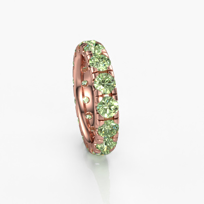 Cette bague superposable porte le nom Jackie 4.2 et le type de bague s'appelle une bague éternité. Par conséquent, toutes les pierres précieuses sont serties autour de l'anneau de la bague. Cette bague superposable forgée en or rose 14 Carat a tout autour des petits diamants synthétiques vert de 4.2 mm. Cette bague éternité pour femmes forgée en or rose est une jolie bague superposable qui rendra votre demande en mariage très spéciale. Les diamants synthétiques vert brillants sont tous d'identique et sont sertis autour de la bague superposable. Tous les diamants synthétiques vert sont soigneusement sélectionnés, précisément parce qu'ils doivent être aussi identiques que possible pour créer le meilleur résultat possible sur cette bague. Ce sont des produits de la nature, de sorte qu'il existe encore des différences minimes entre chaque pierre. Mais comme tous nos diamants synthétiques vert sont placés à la main avec beaucoup de précision par notre orfèvre, l'effet éternité peut être renforcé. Cela demande beaucoup de patience et une main habile, mais fabriquer la bague parfaite pour femmes est une passion qui anime nos orfèvres. Le résultat est une bague magnifique dans laquelle la rangée de diamants synthétiques vert semble continuer sans fin. Le symbole de votre amour infini pour elle ! Magnifique n'est-ce pas ?