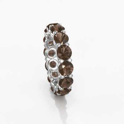 Cette bague porte le nom Heddy rnd 4.7 et le type de bague s'appelle une bague éternité. Par conséquent, toutes les pierres précieuses sont serties autour de l'anneau de la bague. Cette bague forgée en or blanc 14 Carat a tout autour des petits quartz fumé de 4.7 mm. Cette bague éternité pour femmes forgée en or blanc est une jolie bague qui rendra votre demande en mariage très spéciale. Les quartz fumé brillants sont tous d'identique et sont sertis autour de la bague. Tous les quartz fumé sont soigneusement sélectionnés, précisément parce qu'ils doivent être aussi identiques que possible pour créer le meilleur résultat possible sur cette bague. Ce sont des produits de la nature, de sorte qu'il existe encore des différences minimes entre chaque pierre. Mais comme tous nos quartz fumé sont placés à la main avec beaucoup de précision par notre orfèvre, l'effet éternité peut être renforcé. Cela demande beaucoup de patience et une main habile, mais fabriquer la bague parfaite pour femmes est une passion qui anime nos orfèvres. Le résultat est une bague magnifique dans laquelle la rangée de quartz fumé semble continuer sans fin. Le symbole de votre amour infini pour elle ! Magnifique n'est-ce pas ? Puisque nous concevons et livrons nos propres bijoux, nous sommes en mesure de vous proposer une bague à un prix que vous ne pourrez pas trouver ailleurs. Une alliance est fabriquée sur commande, ce qui permet d'éviter les excédents de matériel et nous permet de vous proposer une superbe offre de prix. Nous comprenons qu'acheter votre bague en ligne soit un risque, mais nous vous assistons volontiers dans le processus de conception, en tenant compte de votre budget.Notre équipe de designers talentueux et passionnés ajoute chaque jour de nouveaux modèles bagues à notre collection en ligne. Notre objectif est de pouvoir vous offrir une grande variété de bijoux. N'hésitez pas à demander un devis si vous avez des souhaits spécifiques pour votre bague. Nous garantissons de vous faire une offre que vous ne pourrez pas refuser.Pour vous faciliter la tâche, vous pouvez facilement nous retourner tout bijou commandé dans les 30 jours suivant la livraison.