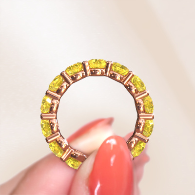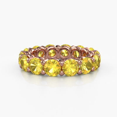 Cette bague porte le nom Heddy rnd 4.7 et le type de bague s'appelle une bague éternité. Par conséquent, toutes les pierres précieuses sont serties autour de l'anneau de la bague. Cette bague forgée en or rose 14 Carat a tout autour des petits saphirs jaunes de 4.7 mm. Cette bague éternité pour femmes forgée en or rose est une jolie bague qui rendra votre demande en mariage très spéciale. Les saphirs jaunes brillants sont tous d'identique et sont sertis autour de la bague. Tous les saphirs jaunes sont soigneusement sélectionnés, précisément parce qu'ils doivent être aussi identiques que possible pour créer le meilleur résultat possible sur cette bague. Ce sont des produits de la nature, de sorte qu'il existe encore des différences minimes entre chaque pierre. Mais comme tous nos saphirs jaunes sont placés à la main avec beaucoup de précision par notre orfèvre, l'effet éternité peut être renforcé. Cela demande beaucoup de patience et une main habile, mais fabriquer la bague parfaite pour femmes est une passion qui anime nos orfèvres. Le résultat est une bague magnifique dans laquelle la rangée de saphirs jaunes semble continuer sans fin. Le symbole de votre amour infini pour elle ! Magnifique n'est-ce pas ? Puisque nous concevons et livrons nos propres bijoux, nous sommes en mesure de vous proposer une bague à un prix que vous ne pourrez pas trouver ailleurs. Une alliance est fabriquée sur commande, ce qui permet d'éviter les excédents de matériel et nous permet de vous proposer une superbe offre de prix. Nous comprenons qu'acheter votre bague en ligne soit un risque, mais nous vous assistons volontiers dans le processus de conception, en tenant compte de votre budget.Notre équipe de designers talentueux et passionnés ajoute chaque jour de nouveaux modèles bagues à notre collection en ligne. Notre objectif est de pouvoir vous offrir une grande variété de bijoux. N'hésitez pas à demander un devis si vous avez des souhaits spécifiques pour votre bague. Nous garantissons de vous faire une offre que vous ne pourrez pas refuser.Pour vous faciliter la tâche, vous pouvez facilement nous retourner tout bijou commandé dans les 30 jours suivant la livraison.