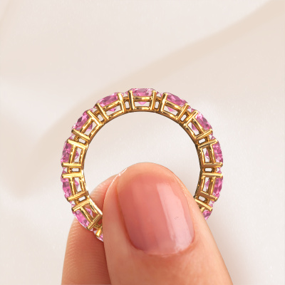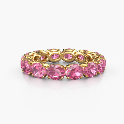 Cette bague porte le nom Vivienne OVL 5x4 et le type de bague s'appelle une bague éternité. Par conséquent, toutes les pierres précieuses sont serties autour de l'anneau de la bague. Cette bague forgée en or jaune 14 Carat a tout autour des petits saphirs roses de 5x4 mm. Cette bague éternité pour femmes forgée en or jaune est une jolie bague qui rendra votre demande en mariage très spéciale. Les saphirs roses brillants sont tous d'identique et sont sertis autour de la bague. Tous les saphirs roses sont soigneusement sélectionnés, précisément parce qu'ils doivent être aussi identiques que possible pour créer le meilleur résultat possible sur cette bague. Ce sont des produits de la nature, de sorte qu'il existe encore des différences minimes entre chaque pierre. Mais comme tous nos saphirs roses sont placés à la main avec beaucoup de précision par notre orfèvre, l'effet éternité peut être renforcé. Cela demande beaucoup de patience et une main habile, mais fabriquer la bague parfaite pour femmes est une passion qui anime nos orfèvres. Le résultat est une bague magnifique dans laquelle la rangée de saphirs roses semble continuer sans fin. Le symbole de votre amour infini pour elle ! Magnifique n'est-ce pas ? En utilisant nos techniques modernes, nous sommes en mesure de concevoir et de personnaliser les bijoux de la plus haute qualité avec le plus grand soin pour vous. Nos bagues ont toujours un prix inférieur de 30% à celles des autres bijoutiers. Nous fabriquons des bagues à la commande afin de ne pas avoir à garder un stock important. Si vous avez un certain budget, nous serons ravis de vous conseiller tout en le respectant.De nouveaux modèles de bijoux sont ajoutés à notre collection en ligne quotidiennement. Notre équipe de designers passionnés s'efforce de créer des designs extraordinaires et variés. Avez-vous vu une bague qui vous plait ? N'hésitez pas à nous contacter. Grâce à un bon rapport qualité / prix, nous vous ferons une offre que vous ne pourrez pas refuser !Pour vous faciliter la tâche, vous pouvez facilement nous retourner tout bijou commandé dans les 30 jours suivant la livraison.