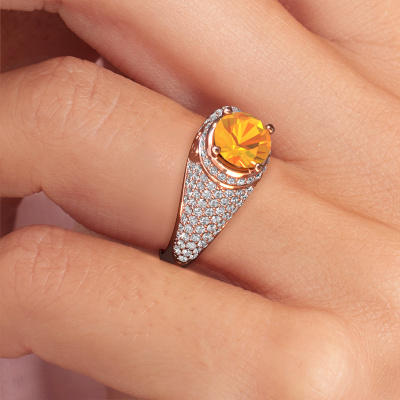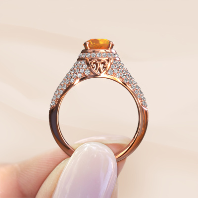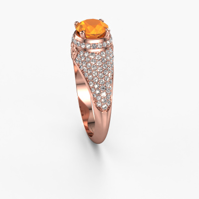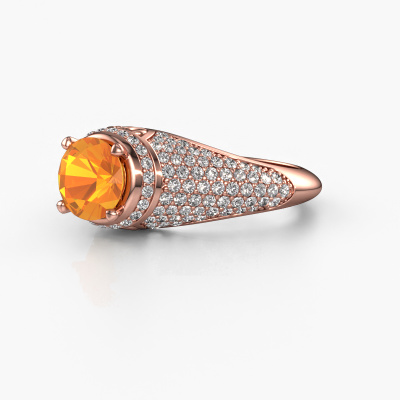 Cette bague unique forgée en or rose, que nous avons appelée Sharee, est un pur travail d’art ! La bague est faite d'or 14 Carat et est sertie d'un citrine ronds de 6.5 mm. Les plus petits détails ont été fabriqués avec beaucoup de patience et de passion par notre orfèvre. Ce véritable travail artisanal nécessite un œil expert et une main compétente pour concevoir une bague avec la plus grande précision. Et c'est précisément ce qui enthousiasme nos orfèvres ! Les beaux citrines sont mis en place de manière spéciale, de telle sorte à ce qu'ils sortent encore mieux. Cela donne aux bagues pour femmes une allure supplémentaire. La bague est unique en raison de la pierre précieuse naturelle que nous avons spécialement sélectionnée pour cette bague Sharee. Et en choisissant votre métal précieux, vous pouvez créer vous-même une bague unique. Nos orfèvres fabriquent votre bague sur mesure, à votre goût et avec beaucoup de passion et de soin. Le or rose bague comme indiqué ici peut être ajusté à votre guise avec l'outil de configuration. Si vous avez des idées que vous ne pouvez pas appliquer avec l'outil de configuration, vous pouvez toujours les partager à nos créateurs de bijoux. Vous pouvez bien sûr toujours nous poser des questions.Puisque nous concevons et livrons nos propres bijoux, nous sommes en mesure de vous proposer une bague à un prix que vous ne pourrez pas trouver ailleurs. Une alliance est fabriquée sur commande, ce qui permet d'éviter les excédents de matériel et nous permet de vous proposer une superbe offre de prix. Nous comprenons qu'acheter votre bague en ligne soit un risque, mais nous vous assistons volontiers dans le processus de conception, en tenant compte de votre budget.Pour vous faciliter la tâche, vous pouvez facilement nous retourner tout bijou commandé dans les 30 jours suivant la livraison. Avez-vous des questions ? Souhaitez-vous modifier un design existant avec vos propres idées ? Vous nous donc aussi contacterez. Notre équipe de professionnels se fera un plaisir de vous conseiller dans la création de votre bijou de rêve style exclusive.