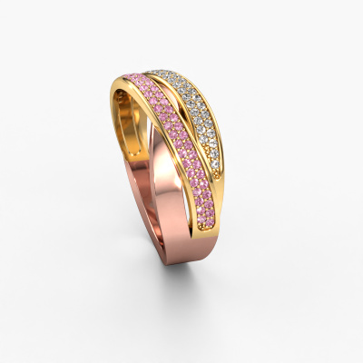 Myra est le nom que nous avons donné à cette bague. Cette bague forgée en or rose 14 Carat est sertie d'un saphir rose. Vous recherchez une Bague forgée en or rose unique et avec un look modernes ? Voici donc une belle bague que vous pouvez aussi ajuster à votre goût. Parfait donc pour une femmes contemporaine et modernes ! Un magnifique saphir rose est serti dans cette bague fantaisie. Celui-ci est sélectionné avec soin, car seules les plus belles pierres précieuses de votre bague peuvent la faire briller. Notre orfèvre fabrique votre bague dans notre propre atelier et place le saphir rose dans l'anneau avec une précision extrême. Donc, il est travaillé et poli jusqu'à ce que le résultat soit visible : la bague parfaite ! Nos orfèvres ne fabriqueront votre bague qu'une fois que vous l'aurez commandée. Nous ne faisons pas de stock. L'avantage de cela est que nous n'avons pas à inclure les frais de stockage dans nos prix, et nous pouvons donc vous offrir des bijoux à un prix très bas.Nos designers talentueux ajoutent quotidiennement de nouveaux modèles à notre collection en ligne. Ensemble, ils créent une collection variée des plus beaux bijoux. Si vous préférez créer des bagues selon votre propre conception, n'hésitez pas à demander un devis. Nous vous ferons une offre incroyable, basée sur la qualité et le prix.Pour vous faciliter la tâche, vous pouvez facilement nous retourner tout bijou commandé dans les 30 jours suivant la livraison.Nous sommes curieux de savoir comment vous allez personnaliser votre bague Myra. Si quelque chose ne vous semble pas tout à fait clair, vous pouvez toujours nous contacter. Nous serons heureux de vous aider !