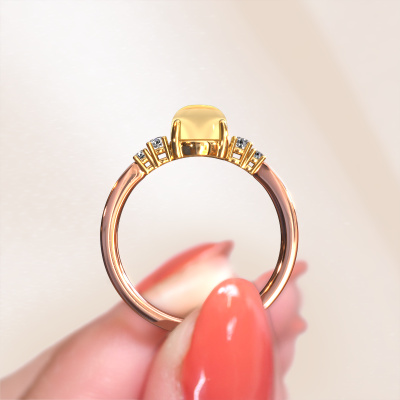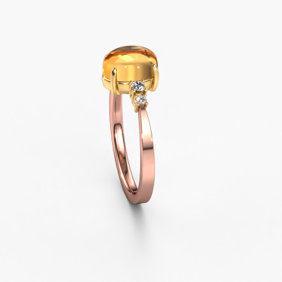 Sur la photo, vous pouvez voir la bague forgée en or rose Jelke avec un cabochon citrine. Cabochon signifie que le citrine est d'abord affûté en une forme spécifique, telle que la forme d'une goutte, d'un cœur ou une forme cabochon ovale. Puis que des couches sont coupées du haut de la pierre jusqu'à ce que la pierre ait une belle forme convexe. Un bijou avec une pierre précieuse taillée en cabochon est magnifique, attire élégamment tous les regards et correspond parfaitement à un style fantaisie et plus encore à un style vintage. Votre bague osés est finalisée dans les moindres détails par nos orfèvres jusqu'à la création de votre bague unique, dans laquelle le citrine cabochon prend tout son sens. Votre bague personnelle Jelke que vous vous créez est fabriquée avec amour et passion par nos orfèvres. Préféreriez-vous une option autre que la bague en or rose Jelke présentée ici ? Vous avez alors diverses options possibles via le configurateur. Si vous n'êtes pas complètement sûr(e), nous serons ravis de vous conseiller ! Vous pouvez également graver votre bague. DiamondsByMe se fera un plaisir de le faire pour vous ! En utilisant nos techniques modernes, nous sommes en mesure de concevoir et de personnaliser les bijoux de la plus haute qualité avec le plus grand soin pour vous. Nos bagues ont toujours un prix inférieur de 30% à celles des autres bijoutiers. Nous fabriquons des bagues à la commande afin de ne pas avoir à garder un stock important. Si vous avez un certain budget, nous serons ravis de vous conseiller tout en le respectant.Pour vous faciliter la tâche, vous pouvez facilement nous retourner tout bijou commandé dans les 30 jours suivant la livraison. Vous pouvez bien entendu toujours nous contacter si vous avez besoin de notre aide pour créer votre bague personnelle Jelke osés !