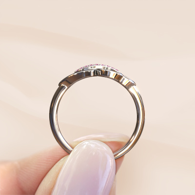 Cette bague Rowie forgée en platine digne de ce nom est une superbe bague sertie d'un saphir rose. Pour certaines personnes, une bague est un bel accessoire de mode, mais elle convient aussi tout particulièrement à un bijou qui aurait un sens. Une bague comme celle-ci peut être portée tous les jours et peut être facilement combinée avec différents styles. C'est la raison pour laquelle créer une bague qui a un sens généreux pour vous est un travail magnifique. Vous vous rappellerez à chaque loyautés que vous regarderez cette bague d'une personne de valeur qui compte pour vous ou qui vous tient à cœur. Du souvenir d'un moment ou d'une journée spéciale. Des souvenirs que l'on peut chérir et revivre dans cette bague. La beauté réside aussi dans le fait que les brillants utilisés, le métal précieux et les pierres précieuses, sont également destinés à durer toute une vie. Et ainsi, de précieux souvenirs peuvent également être portés toute une vie !Votre bague personnelle rowie que vous vous créez est fabriquée avec amour et passion par nos orfèvres. Préféreriez-vous une option autre que la bague en platine rowie présentée ici ? Vous avez alors diverses options possibles via le configurateur. Si vous n'êtes pas complètement sûr(e), nous serons ravis de vous conseiller !En utilisant nos techniques modernes, nous sommes en mesure de concevoir et de personnaliser les bijoux de la plus haute qualité avec le plus grand soin pour vous. Nos bagues ont toujours un prix inférieur de 30% à celles des autres bijoutiers. Nous fabriquons des bagues à la commande afin de ne pas avoir à garder un stock important. Si vous avez un certain budget, nous serons ravis de vous conseiller tout en le respectant.Pour vous faciliter la tâche, vous pouvez facilement nous retourner tout bijou commandé dans les 30 jours suivant la livraison.Vous avez peut-être encore des questions sur la personnalisation de votre bague fantaisie Rowie. N'hésitez pas à nous contacter. L'équipe par DiamondsByMe est toujours heureuse de vous aider !