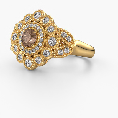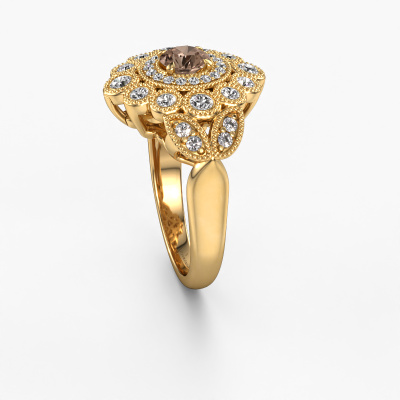 Votre attention est-elle toujours attirée par les articles vintage ? Vous pouvez donc être sûre que cette bague forgée en or jaune vous ira bien ! C'est un nouveau modèle, basé sur des motifs vintage. Un peu de rêve, un beau design ! Surtout si vous l'ajustez encore plus à votre goût. De magnifiques diamants bruns sont utilisés dans cette bague flower. Comme vous pouvez le constater, vous pouvez choisir une pierre précieuse qui convient à votre style. Chaque pierre précieuse est soigneusement sélectionnée dans le monde entier par nos commerçants. Notre orfèvre ne veut utiliser que les plus belles pierres précieuses sur un bijou. Après tout, c'est la couronne de son travail ! Nos orfèvres fabriquent votre bague sur mesure, à votre goût et avec beaucoup de passion et de soin. Le or jaune bague comme indiqué ici peut être ajusté à votre guise avec l'outil de configuration. Si vous avez des idées que vous ne pouvez pas appliquer avec l'outil de configuration, vous pouvez toujours les partager à nos créateurs de bijoux. Vous pouvez bien sûr toujours nous poser des questions.Puisque nous concevons et livrons nos propres bijoux, nous sommes en mesure de vous proposer une bague à un prix que vous ne pourrez pas trouver ailleurs. Une alliance est fabriquée sur commande, ce qui permet d'éviter les excédents de matériel et nous permet de vous proposer une superbe offre de prix. Nous comprenons qu'acheter votre bague en ligne soit un risque, mais nous vous assistons volontiers dans le processus de conception, en tenant compte de votre budget.Pour vous faciliter la tâche, vous pouvez facilement nous retourner tout bijou commandé dans les 30 jours suivant la livraison.Voulez-vous plus d'informations sur la bague entourage Elia ? Jetez un coup d'œil à notre foire aux questions. Bien sûr, vous pouvez toujours contacter notre équipe d'orfèvres passionnés. Nous aimerions créer les bijoux de vos rêves !