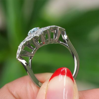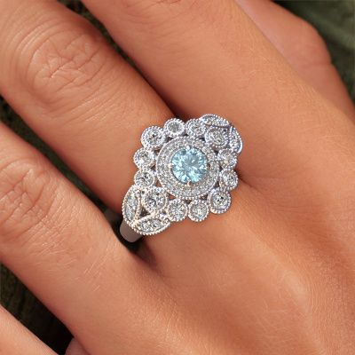Votre attention est-elle toujours attirée par les articles vintage ? Vous pouvez donc être sûre que cette bague forgée en or blanc vous ira bien ! C'est un nouveau modèle, basé sur des motifs vintage. Un peu de rêve, un beau design ! Surtout si vous l'ajustez encore plus à votre goût. De magnifiques diamant synthétique bleu sont utilisés dans cette bague flower. Comme vous pouvez le constater, vous pouvez choisir une pierre précieuse qui convient à votre style. Chaque pierre précieuse est soigneusement sélectionnée dans le monde entier par nos commerçants. Notre orfèvre ne veut utiliser que les plus belles pierres précieuses sur un bijou. Après tout, c'est la couronne de son travail ! Nos orfèvres fabriquent votre bague sur mesure, à votre goût et avec beaucoup de passion et de soin. Le or blanc bague comme indiqué ici peut être ajusté à votre guise avec l'outil de configuration. Si vous avez des idées que vous ne pouvez pas appliquer avec l'outil de configuration, vous pouvez toujours les partager à nos créateurs de bijoux. Vous pouvez bien sûr toujours nous poser des questions.Puisque nous concevons et livrons nos propres bijoux, nous sommes en mesure de vous proposer une bague à un prix que vous ne pourrez pas trouver ailleurs. Une alliance est fabriquée sur commande, ce qui permet d'éviter les excédents de matériel et nous permet de vous proposer une superbe offre de prix. Nous comprenons qu'acheter votre bague en ligne soit un risque, mais nous vous assistons volontiers dans le processus de conception, en tenant compte de votre budget.Pour vous faciliter la tâche, vous pouvez facilement nous retourner tout bijou commandé dans les 30 jours suivant la livraison.Voulez-vous plus d'informations sur la bague entourage Elia ? Jetez un coup d'œil à notre foire aux questions. Bien sûr, vous pouvez toujours contacter notre équipe d'orfèvres passionnés. Nous aimerions créer les bijoux de vos rêves !