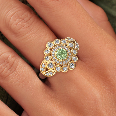 Votre attention est-elle toujours attirée par les articles vintage ? Vous pouvez donc être sûre que cette bague forgée en or rose vous ira bien ! C'est un nouveau modèle, basé sur des motifs vintage. Un peu de rêve, un beau design ! Surtout si vous l'ajustez encore plus à votre goût. De magnifiques diamants synthétiques vert sont utilisés dans cette bague flower. Comme vous pouvez le constater, vous pouvez choisir une pierre précieuse qui convient à votre style. Chaque pierre précieuse est soigneusement sélectionnée dans le monde entier par nos commerçants. Notre orfèvre ne veut utiliser que les plus belles pierres précieuses sur un bijou. Après tout, c'est la couronne de son travail ! Nos orfèvres fabriquent votre bague sur mesure, à votre goût et avec beaucoup de passion et de soin. Le or rose bague comme indiqué ici peut être ajusté à votre guise avec l'outil de configuration. Si vous avez des idées que vous ne pouvez pas appliquer avec l'outil de configuration, vous pouvez toujours les partager à nos créateurs de bijoux. Vous pouvez bien sûr toujours nous poser des questions.Puisque nous concevons et livrons nos propres bijoux, nous sommes en mesure de vous proposer une bague à un prix que vous ne pourrez pas trouver ailleurs. Une alliance est fabriquée sur commande, ce qui permet d'éviter les excédents de matériel et nous permet de vous proposer une superbe offre de prix. Nous comprenons qu'acheter votre bague en ligne soit un risque, mais nous vous assistons volontiers dans le processus de conception, en tenant compte de votre budget.Pour vous faciliter la tâche, vous pouvez facilement nous retourner tout bijou commandé dans les 30 jours suivant la livraison.Voulez-vous plus d'informations sur la bague entourage Elia ? Jetez un coup d'œil à notre foire aux questions. Bien sûr, vous pouvez toujours contacter notre équipe d'orfèvres passionnés. Nous aimerions créer les bijoux de vos rêves !