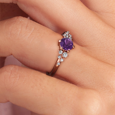 Cette bague forgée en or rose meilleurs prix Royce RND est une bague magnifique. Un améthyste spécial est serti dans la bague. Une bague design qui témoigne d'une femmes avec style. La bague est conçue par nos propres créateurs de bijoux.