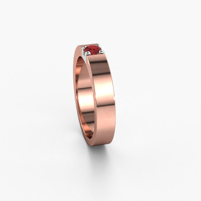 Cette bague style 1 pierre porte le nom de Dana 1. Ce type de bague s'appelle «Mémoire», car elle est avec un profil droit. Cela permet de porter la bague avec d'autres bagues. Cette bague est en or rose 14 Carat et contient un rubis de 3.7 mm. Comme vous pouvez le constater, cette belle bague mémoire pour femmes en or rose et avec un rubis est placée côte à côte à la bague. Le sens de l'mémoire est littéralement de 'travailler ensemble'. Et c’est exactement ce que font ces bijoux : ensemble, ils créent un effet spécial supplémentaire sur le groupe avec un anneau modernes ! Une belle symbolique pour une bague, non ? Tous les rubis soigneusement sélectionnés sont placés à la main par notre maître orfèvre. Un travail très précis, qui tire le meilleur parti de notre combinaison unique d'artisanat pur et des techniques d'orfèvre les plus modernes. Toutes les pierres précieuses doivent être placées exactement de la même manière pour diffuser parfaitement la lumière. Par conséquent, l'orfèvre gardera cette bague à contre-jour lors de la conception pour voir si les rubis sont placés correctement. Cela demande une main habile et beaucoup de patience, mais le résultat est un véritable chef-d'œuvre. Et c'est ce que nous recherchons En combinant les dernières techniques modernes, associées à une fabrication ancienne, nous sommes en mesure de fabriquer nos bagues dans notre propre studio. Chaque bijou est fabriqué sur commande. Ceci est avantageux car nous sommes en mesure de vous proposer un prix que vous ne trouverez nulle part ailleurs. Notre équipe de designers talentueux et passionnés ajoute chaque jour de nouveaux modèles bagues à notre collection en ligne. Notre objectif est de pouvoir vous offrir une grande variété de bijoux. N'hésitez pas à demander un devis si vous avez des souhaits spécifiques pour votre bague. Nous garantissons de vous faire une offre que vous ne pourrez pas refuser. Pour vous faciliter la tâche, vous pouvez facilement nous retourner tout bijou commandé dans les 30 jours suivant la livraison.'
