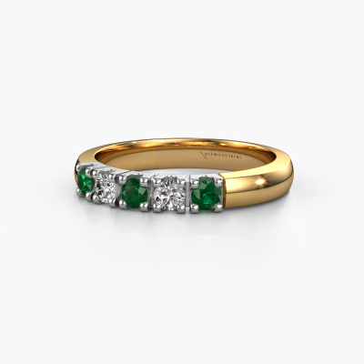 Cette bague style memoire porte le nom de Rianne 5. Ce type de bague s'appelle «Mémoire», car elle est créée avec un profil droit. Cela permet de porter la bague à côté d'autres bagues. Cette bague est en or jaune 14 Carat et contient un emeraude associé à une diamant de 2.7 mm serties sur l'anneau. Comme vous pouvez le constater, avec cette belle mémoire pour femmes en or jaune, de émeraudes sont sertis les uns à côté des autres sur la bague. Le sens de l'mémoire est littéralement de 'travailler ensemble'. Et c’est exactement ce que font ces pierres précieuses : ensemble, elles créent un effet spécial supplémentaire sur l'anneau avec un anneau classiques ! Une belle symbolique pour un anneau, non ? Tous les émeraudes soigneusement sélectionnés sont placés à la main par notre maître orfèvre. Un travail très précis, qui tire le meilleur parti de notre combinaison unique d'artisanat pur et des techniques d'orfèvre les plus modernes. Toutes les pierres précieuses doivent être serties exactement de la même manière pour diffuser parfaitement la lumière. Par conséquent, l'orfèvre gardera cette bague sous la lumière pour voir si les émeraudes sont placés correctement. Cela demande une main habile et beaucoup de patience, mais le résultat est un véritable chef-d'œuvre. Et c'est ce que nous recherchons ! En combinant les dernières techniques modernes, associées à une fabrication ancienne, nous sommes en mesure de fabriquer nos bagues dans notre propre studio. Chaque bijou est fabriqué sur commande. Ceci est avantageux car nous sommes en mesure de vous proposer un prix que vous ne trouverez nulle part ailleurs.
