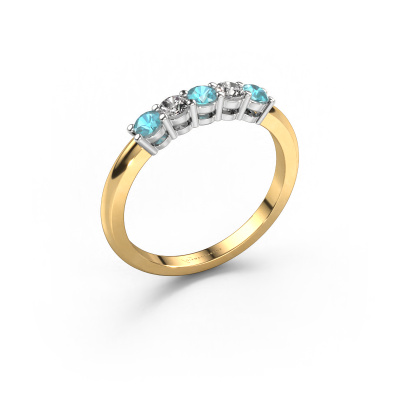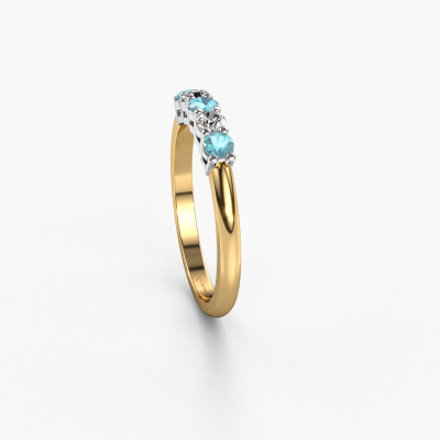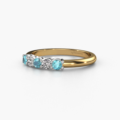 Cette bague style 5 pierres porte le nom de Michelle 5. Ce type de bague s'appelle «Mémoire», car elle est créée avec un profil droit. Cela permet de porter la bague à côté d'autres bagues. Cette bague est en or jaune 14 Carat et contient un topaze bleue associé à une diamant synthétique de 3 mm serties sur l'anneau. Comme vous pouvez le constater, avec cette belle mémoire pour femmes en or jaune, de topaze bleue sont sertis les uns à côté des autres sur la bague. Le sens de l'mémoire est littéralement de 'travailler ensemble'. Et c’est exactement ce que font ces pierres précieuses : ensemble, elles créent un effet spécial supplémentaire sur l'anneau avec un anneau classiques ! Une belle symbolique pour un anneau, non ? Tous les topaze bleue soigneusement sélectionnés sont placés à la main par notre maître orfèvre. Un travail très précis, qui tire le meilleur parti de notre combinaison unique d'artisanat pur et des techniques d'orfèvre les plus modernes. Toutes les pierres précieuses doivent être serties exactement de la même manière pour diffuser parfaitement la lumière. Par conséquent, l'orfèvre gardera cette bague sous la lumière pour voir si les topaze bleue sont placés correctement. Cela demande une main habile et beaucoup de patience, mais le résultat est un véritable chef-d'œuvre. Et c'est ce que nous recherchons ! [Bestp1r_long]