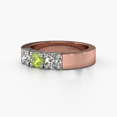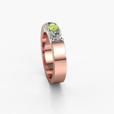 Cette bague style 3 pierres porte le nom de Dana 3. Ce type de bague s'appelle «Mémoire», car elle est créée avec un profil droit. Cela permet de porter la bague à côté d'autres bagues. Cette bague est en or rose 14 Carat et contient un péridot associé à une diamant synthétique de 4 mm serties sur l'anneau. Comme vous pouvez le constater, avec cette belle mémoire pour femmes en or rose, de péridots sont sertis les uns à côté des autres sur la bague. Le sens de l'mémoire est littéralement de 'travailler ensemble'. Et c’est exactement ce que font ces pierres précieuses : ensemble, elles créent un effet spécial supplémentaire sur l'anneau avec un anneau modernes ! Une belle symbolique pour un anneau, non ? Tous les péridots soigneusement sélectionnés sont placés à la main par notre maître orfèvre. Un travail très précis, qui tire le meilleur parti de notre combinaison unique d'artisanat pur et des techniques d'orfèvre les plus modernes. Toutes les pierres précieuses doivent être serties exactement de la même manière pour diffuser parfaitement la lumière. Par conséquent, l'orfèvre gardera cette bague sous la lumière pour voir si les péridots sont placés correctement. Cela demande une main habile et beaucoup de patience, mais le résultat est un véritable chef-d'œuvre. Et c'est ce que nous recherchons ! [Bestp1r_long] Nos designers talentueux ajoutent quotidiennement de nouveaux modèles à notre collection en ligne. Ensemble, ils créent une collection variée des plus beaux bijoux. Si vous préférez créer des bagues selon votre propre conception, n'hésitez pas à demander un devis. Nous vous ferons une offre incroyable, basée sur la qualité et le prix. Pour vous faciliter la tâche, vous pouvez facilement nous retourner tout bijou commandé dans les 30 jours suivant la livraison.'