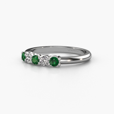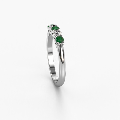 Cette bague style 5 pierres porte le nom de Michelle 5. Ce type de bague s'appelle «Mémoire», car elle est créée avec un profil droit. Cela permet de porter la bague à côté d'autres bagues. Cette bague est en platine et contient un emeraude associé à une diamant synthétique de 3 mm serties sur l'anneau. Comme vous pouvez le constater, avec cette belle mémoire pour femmes en platine, de émeraudes sont sertis les uns à côté des autres sur la bague. Le sens de l'mémoire est littéralement de 'travailler ensemble'. Et c’est exactement ce que font ces pierres précieuses : ensemble, elles créent un effet spécial supplémentaire sur l'anneau avec un anneau classiques ! Une belle symbolique pour un anneau, non ? Tous les émeraudes soigneusement sélectionnés sont placés à la main par notre maître orfèvre. Un travail très précis, qui tire le meilleur parti de notre combinaison unique d'artisanat pur et des techniques d'orfèvre les plus modernes. Toutes les pierres précieuses doivent être serties exactement de la même manière pour diffuser parfaitement la lumière. Par conséquent, l'orfèvre gardera cette bague sous la lumière pour voir si les émeraudes sont placés correctement. Cela demande une main habile et beaucoup de patience, mais le résultat est un véritable chef-d'œuvre. Et c'est ce que nous recherchons ! [Bestp1r_long]