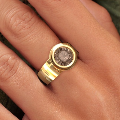 Voulez-vous une bague magnifique et élégants pour femmes avec une seule pierre précieuse pour attirer tous les regards ? Que pensez-vous de cette bague Maxime ? La bague Maxime montrée ici est forgée en or jaune avec un beau diamant brun ronds de 2.00 crt. Le diamant brun est soigneusement sélectionné par nos fournisseurs de diamants bruns, puis placé par l'orfèvre dans la bague, conformément à l'artisanat traditionnel. La bague est finie et polie dans les moindres détails jusqu'à ce qu'une bague unique avec un beau diamant brun ait été créée. Fabriquée spécialement pour vous ! La Maxime est spécialement conçues pour vous, avec une attention particulière portée aux détails et au design.Que pensez-vous de cette bague modernes en or jaune ? Vous pouvez créer cette bague via notre configurateur. Votre bague personnelle est par la suite fabriquée à la main par nos orfèvres. Le choix du métal précieux et des pierres précieuses peut être entièrement personnalisé. Avez-vous certaines idées pour votre bague, mais vous ne pouvez pas trouver nos options qui leur correspondent ? Alors faites-nous le savoir. Nous fabriquons votre bague personnelle entièrement selon vos souhaits.Devez-vous respecter un certain budget ? N'hésitez pas à nous contacter, nous serons heureux de vous conseiller sur toutes les possibilités. Dans tous les cas, nous offrons toutes les bagues à un prix que vous ne trouverez nulle part ailleurs, car nous ne fabriquerons la bague uniquement lorsque vous la commanderez. Cela nous permet de vous donner la garantie du meilleur prix.Pour vous faciliter la tâche, vous pouvez facilement nous retourner tout bijou commandé dans les 30 jours suivant la livraison. Si vous avez une question, consultez notre foire aux questions. Si vous n'êtes pas familier avec le logiciel de configuration, ou si vous avez des souhaits spécifiques pour votre bague personnelle, n'hésitez Maxime pas à nous contacter !