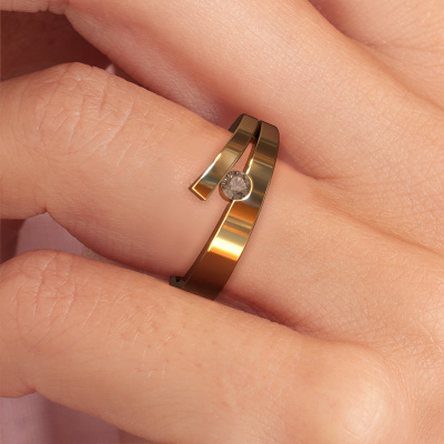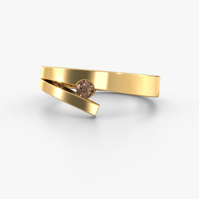 Rosario est le nom que nous avons donné à cette bague. Cette bague forgée en or jaune 14 Carat est sertie d'un diamant brun d'une de 0.10 crt. Vous recherchez une bague forgée en or jaune unique et au look modernes ? Voici donc une belle bague que vous pouvez aussi ajuster à votre goût. Parfait pour une femmes contemporaine et modernes ! Un beau diamant brun est incorporé à cette bague aigus. Celui-ci est sélectionné avec soin, car seules les plus belles pierres précieuses de votre bague peuvent la briller. Notre orfèvre fabrique votre bague dans notre propre atelier et place le diamant brun dans l'anneau avec une précision extrême. Donc, la bague est travaillée et polie jusqu'à ce que le résultat soit visible : la bague parfaite !Devez-vous respecter un certain budget ? N'hésitez pas à nous contacter, nous serons heureux de vous conseiller sur toutes les possibilités. Dans tous les cas, nous offrons toutes les bagues à un prix que vous ne trouverez nulle part ailleurs, car nous ne fabriquerons la bague uniquement lorsque vous la commanderez. Cela nous permet de vous donner la garantie du meilleur prix.