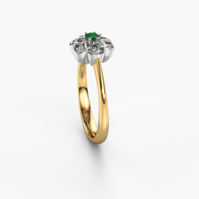 Comment décririez-vous votre propre style ? Aimez-vous quelque chose de différent de l'habituel ? Cette bague forgée en or jaune flower est une bague magnifique que vous pouvez ajuster à votre goût. Le emeraude est serti dans cette bague. Ces émeraudes ont été soigneusement sélectionnés, car nous pensons que seules les plus belles pierres précieuses doivent briller sur votre bague, n'est-ce pas ? Notre orfèvre fabrique votre bague, en bas, dans notre propre atelier et place le emeraude sur la bague avec une précision extrême. La bague est Donc travaillée et polie jusqu'à ce que le résultat soit visible : une bague parfaite, qui témoigne le goût d'une femmes ! Une fois que vous avez conçu votre bague Uma avec notre configurateur, nos orfèvres se mettent à sa fabrication pour vous. La fabrication se fait de manière traditionnelle avec passion et soin. De plus, nous travaillons avec des matériaux extraits de façon équitable. Si vous voulez changer quelque chose, vous pouvez le faire avec notre configurateur. Si vous avez des souhaits spécifiques pour votre bague Uma, mais si vous ne voyez pas une option qui leur corresponde dans le configurateur, veuillez contacter notre équipe de designers expérimentés.Devez-vous respecter un certain budget ? N'hésitez pas à nous contacter, nous serons heureux de vous conseiller sur toutes les possibilités. Dans tous les cas, nous offrons toutes les bagues à un prix que vous ne trouverez nulle part ailleurs, car nous ne fabriquerons la bague uniquement lorsque vous la commanderez. Cela nous permet de vous donner la garantie du meilleur prix.Pour vous faciliter la tâche, vous pouvez facilement nous retourner tout bijou commandé dans les 30 jours suivant la livraison. Êtes-vous prête à donner vie à votre souhait avec cette bague Uma tendances ? Ou peut-être avez-vous encore des questions ? Dans ce cas dites-le nous. L'équipe DiamondsByMe est prête pour vous aider !