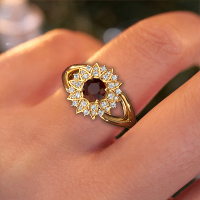 Comment décririez-vous votre propre style ? Aimez-vous quelque chose de différent de l'habituel ? Cette bague forgée en or jaune royaux est une bague magnifique que vous pouvez ajuster à votre goût. Le grenat est serti dans cette bague. Ces grenats ont été soigneusement sélectionnés, car nous pensons que seules les plus belles pierres précieuses doivent briller sur votre bague, n'est-ce pas ? Notre orfèvre fabrique votre bague, en bas, dans notre propre atelier et place le grenat sur la bague avec une précision extrême. La bague est Donc travaillée et polie jusqu'à ce que le résultat soit visible : une bague parfaite, qui témoigne le goût d'une femmes ! Que pensez-vous de cette bague exclusives en or jaune ? Vous pouvez créer cette bague via notre configurateur. Votre bague personnelle est par la suite fabriquée à la main par nos orfèvres. Le choix du métal précieux et des pierres précieuses peut être entièrement personnalisé. Avez-vous certaines idées pour votre bague, mais vous ne pouvez pas trouver nos options qui leur correspondent ? Alors faites-nous le savoir. Nous fabriquons votre bague personnelle entièrement selon vos souhaits.En combinant les dernières techniques modernes, associées à une fabrication ancienne, nous sommes en mesure de fabriquer nos bagues dans notre propre studio. Chaque bijou est fabriqué sur commande. Ceci est avantageux car nous sommes en mesure de vous proposer un prix que vous ne trouverez nulle part ailleurs.Pour vous faciliter la tâche, vous pouvez facilement nous retourner tout bijou commandé dans les 30 jours suivant la livraison. Êtes-vous prête à donner vie à votre souhait avec cette bague Chasidy 1 exclusives ? Ou peut-être avez-vous encore des questions ? Dans ce cas dites-le nous. L'équipe DiamondsByMe est prête pour vous aider !