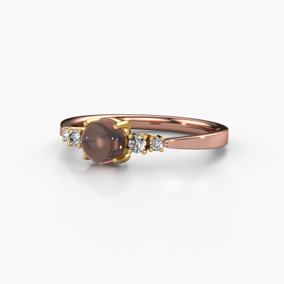 Sur la photo, vous pouvez voir la bague forgée en or rose Regine avec un quartz fumé cabochon rond. Le mot cabochon signifie que le quartz fumé est d'abord affûté dans une forme spécifique, telle que la forme d'une goutte, d'un cœur ou cabochon rond. Puis, des couches sont coupées à parti du haut de la pierre jusqu'à ce que celle-ci obtienne une belle forme convexe. Un bijou avec une pierre précieuse taillée en cabochon est magnifique, attire élégamment tous les regards et correspond parfaitement à un style fantaisie et plus encore à un style vintage. Votre bague 5 pierres sera finalisée dans les moindres détails par nos orfèvres jusqu'à ce que votre bague unique soit créée, dans laquelle le quartz fumé cabochon prend tout son sens. Nos orfèvres fabriquent votre bague sur mesure, à votre goût et avec beaucoup de passion et de soin. Le or rose bague comme indiqué ici peut être ajusté à votre guise avec l'outil de configuration. Si vous avez des idées que vous ne pouvez pas appliquer avec l'outil de configuration, vous pouvez toujours les partager à nos créateurs de bijoux. Vous pouvez bien sûr toujours nous poser des questions.Devez-vous respecter un certain budget ? N'hésitez pas à nous contacter, nous serons heureux de vous conseiller sur toutes les possibilités. Dans tous les cas, nous offrons toutes les bagues à un prix que vous ne trouverez nulle part ailleurs, car nous ne fabriquerons la bague uniquement lorsque vous la commanderez. Cela nous permet de vous donner la garantie du meilleur prix.Pour vous faciliter la tâche, vous pouvez facilement nous retourner tout bijou commandé dans les 30 jours suivant la livraison. Bien sûr, vous pouvez toujours nous contacter si vous avez besoin d’aide pour concevoir votre bague Regine !