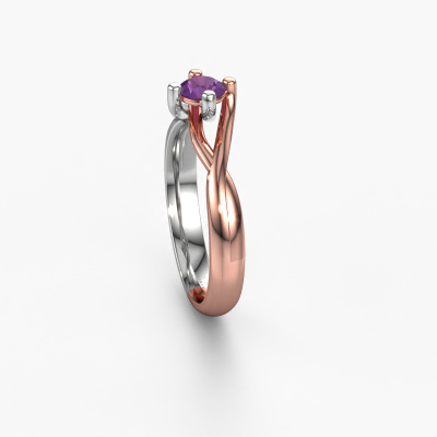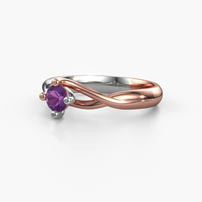 Paulien est le nom que nous avons donné à cette bague. Cette bague forgée en or rose 14 Carat est sertie d'un améthyste d'une de 4.2 mm. Vous recherchez une bague forgée en or rose unique et au look fantaisie ? Voici donc une belle bague que vous pouvez aussi ajuster à votre goût. Parfait pour une femmes contemporaine et fantaisie ! Un beau améthyste est incorporé à cette bague spéciales. Celui-ci est sélectionné avec soin, car seules les plus belles pierres précieuses de votre bague peuvent la briller. Notre orfèvre fabrique votre bague dans notre propre atelier et place le améthyste dans l'anneau avec une précision extrême. Donc, la bague est travaillée et polie jusqu'à ce que le résultat soit visible : la bague parfaite !Nos orfèvres ne fabriqueront votre bague qu'une fois que vous l'aurez commandée. Nous ne faisons pas de stock. L'avantage de cela est que nous n'avons pas à inclure les frais de stockage dans nos prix, et nous pouvons donc vous offrir des bijoux à un prix très bas.