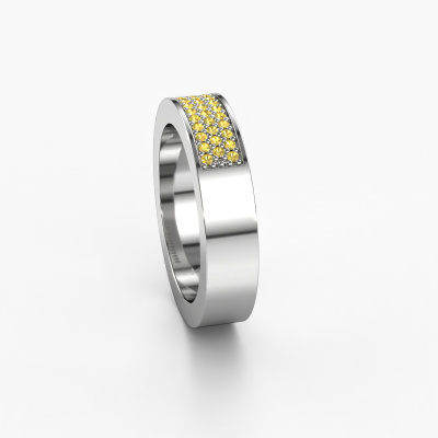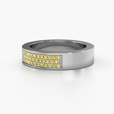 Lindsey 1 est le nom que nous avons donné à cette bague. Cette bague forgée en platine est sertie d'un saphir jaune d'une de 1.1 mm. Vous recherchez une bague forgée en platine unique et au look modernes ? Voici donc une belle bague que vous pouvez aussi ajuster à votre goût. Parfait pour une femmes contemporaine et modernes ! Un beau saphir jaune est incorporé à cette bague sertis pavés. Celui-ci est sélectionné avec soin, car seules les plus belles pierres précieuses de votre bague peuvent la briller. Notre orfèvre fabrique votre bague dans notre propre atelier et place le saphir jaune dans l'anneau avec une précision extrême. Donc, la bague est travaillée et polie jusqu'à ce que le résultat soit visible : la bague parfaite !En utilisant nos techniques modernes, nous sommes en mesure de concevoir et de personnaliser les bijoux de la plus haute qualité avec le plus grand soin pour vous. Nos bagues ont toujours un prix inférieur de 30% à celles des autres bijoutiers. Nous fabriquons des bagues à la commande afin de ne pas avoir à garder un stock important. Si vous avez un certain budget, nous serons ravis de vous conseiller tout en le respectant.