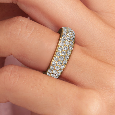 Cette bague Pavé pour femmes porte le nom Emely 8. Cette bague est forgée en or jaune 14 Carat et est sertie d'un diamants de 1.316 crt. Dans cette bague forgée en or jaune, de magnifiques diamants ont été sertis, comme une rangée infinie faite de diamants. Les pierres précieuses sont soigneusement choisies et serties avec la plus grande précision par notre orfèvre. Parce que ce n'est que lorsque les diamants sont sertis les uns à côté des autres que la bague se mettra à briller. Toujours et encore, au cours du processus traditionnel de forgeage et de polissage, l'orfèvre maintient votre bague à la lumière jusqu'à ce qu'il détienne enfin la bague parfaite pour femmes. Composée par vous et spécialement créé pour vous !Nos orfèvres fabriquent votre bague sur mesure, à votre goût et avec beaucoup de passion et de soin. Le or jaune bague comme indiqué ici peut être ajusté à votre guise avec l'outil de configuration. Si vous avez des idées que vous ne pouvez pas appliquer avec l'outil de configuration, vous pouvez toujours les partager à nos créateurs de bijoux. Vous pouvez bien sûr toujours nous poser des questions.En combinant les dernières techniques modernes, associées à une fabrication ancienne, nous sommes en mesure de fabriquer nos bagues dans notre propre studio. Chaque bijou est fabriqué sur commande. Ceci est avantageux car nous sommes en mesure de vous proposer un prix que vous ne trouverez nulle part ailleurs.Pour vous faciliter la tâche, vous pouvez facilement nous retourner tout bijou commandé dans les 30 jours suivant la livraison.. Bien entendu, nous sommes heureux de vous aider à créer votre bague de rêve Emely 8. Si vous avez des questions, n'hésitez surtout pas à nous contacter !