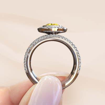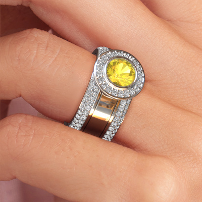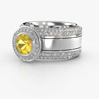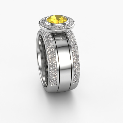 Cette bague sertis pavés sertie de saphirs jaunes a un caractère sertis pavés en raison de sa belle finition. Une bague sertis pavés qui s’adapte parfaitement à une femmes sertis pavés et à son goût propre. Cette bague forgée en platine