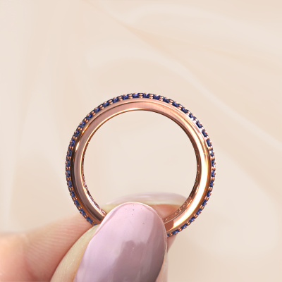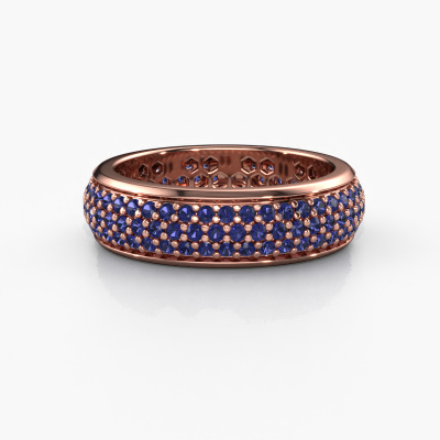 Cette bague porte le nom Tara et le type de bague s'appelle une bague éternité. Par conséquent, toutes les pierres précieuses sont serties autour de l'anneau de la bague. Cette bague forgée en or rose 14 Carat a tout autour des petits saphir de 1.3 mm. Les saphir brillants sont tous d'identique et sont sertis dans l'anneau autour de la bague. Tous les saphir sont soigneusement sélectionnés, précisément parce qu'ils doivent être aussi identiques que possible pour créer le meilleur résultat possible sur cette bague. Notre orfèvre place tous les saphir très précisément à la main, ce qui permet de renforcer l'effet sertis pavés de la bague. La passion est ce qui anime nos orfèvres : créer la bague parfaite. Voici la beauté de notre métier ! Le résultat est une belle bague forgée en or rose exclusives dans laquelle la rangée de saphir semble continuer sans fin. Le symbole parfait pour votre amour infini pour elle ! Voici quelque chose de particulier ! Nos orfèvres ne fabriqueront votre bague qu'une fois que vous l'aurez commandée. Nous ne faisons pas de stock. L'avantage de cela est que nous n'avons pas à inclure les frais de stockage dans nos prix, et nous pouvons donc vous offrir des bijoux à un prix très bas.