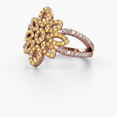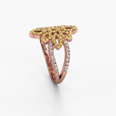Comment décririez-vous votre propre style ? Aimez-vous quelque chose de différent de l'habituel ? Cette bague forgée en or rose sertis pavés est une bague magnifique que vous pouvez ajuster à votre goût. Le saphir jaune est serti dans cette bague. Ces saphirs jaunes ont été soigneusement sélectionnés, car nous pensons que seules les plus belles pierres précieuses doivent briller sur votre bague, n'est-ce pas ? Notre orfèvre fabrique votre bague, en bas, dans notre propre atelier et place le saphir jaune sur la bague avec une précision extrême. La bague est Donc travaillée et polie jusqu'à ce que le résultat soit visible : une bague parfaite, qui témoigne le goût d'une femmes ! Une bague sur mesure vintage et gracieuse est le cadeau parfait ! De nouveaux designs exquis sont ajoutés quotidiennement par notre équipe d'orfèvres passionnés. Et chaque design peut être personnalisé. Personnalisez simplement les métaux précieux et la couleur des pierres précieuses qui seront utilisées, par exemple. Cela rendra votre design de bague vintage karina vraiment unique ! Voulez-vous que votre bague Karina sertis pavés soit encore plus personnelle ? Vous pouvez aussi bien sûr la faire graver. Veuillez simplement l'indiquer avec votre commande. En combinant les dernières techniques modernes, associées à une fabrication ancienne, nous sommes en mesure de fabriquer nos bagues dans notre propre studio. Chaque bijou est fabriqué sur commande. Ceci est avantageux car nous sommes en mesure de vous proposer un prix que vous ne trouverez nulle part ailleurs.Pour vous faciliter la tâche, vous pouvez facilement nous retourner tout bijou commandé dans les 30 jours suivant la livraison. Avez-vous encore des questions ? N’hésitez pas à nous contacter. Nos orfèvres seront heureux de vous conseiller sur la création de votre propre bague style vintage Karina.