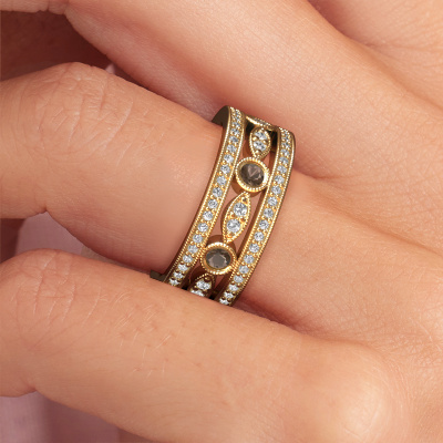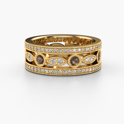 Votre attention est-elle toujours attirée par les articles vintage ? Vous pouvez donc être sûre que cette bague forgée en or jaune vous ira bien ! C'est un nouveau modèle, basé sur des motifs vintage. Un peu de rêve, un beau design ! Surtout si vous l'ajustez encore plus à votre goût. De magnifiques quartz fumé sont utilisés dans cette bague spéciales. Comme vous pouvez le constater, vous pouvez choisir une pierre précieuse qui convient à votre style. Chaque pierre précieuse est soigneusement sélectionnée dans le monde entier par nos commerçants. Notre orfèvre ne veut utiliser que les plus belles pierres précieuses sur un bijou. Après tout, c'est la couronne de son travail ! Nos orfèvres fabriquent votre bague sur mesure, à votre goût et avec beaucoup de passion et de soin. Le or jaune bague comme indiqué ici peut être ajusté à votre guise avec l'outil de configuration. Si vous avez des idées que vous ne pouvez pas appliquer avec l'outil de configuration, vous pouvez toujours les partager à nos créateurs de bijoux. Vous pouvez bien sûr toujours nous poser des questions.Puisque nous concevons et livrons nos propres bijoux, nous sommes en mesure de vous proposer une bague à un prix que vous ne pourrez pas trouver ailleurs. Une alliance est fabriquée sur commande, ce qui permet d'éviter les excédents de matériel et nous permet de vous proposer une superbe offre de prix. Nous comprenons qu'acheter votre bague en ligne soit un risque, mais nous vous assistons volontiers dans le processus de conception, en tenant compte de votre budget.Pour vous faciliter la tâche, vous pouvez facilement nous retourner tout bijou commandé dans les 30 jours suivant la livraison.Voulez-vous plus d'informations sur la bague entourage Jessica ? Jetez un coup d'œil à notre foire aux questions. Bien sûr, vous pouvez toujours contacter notre équipe d'orfèvres passionnés. Nous aimerions créer les bijoux de vos rêves !