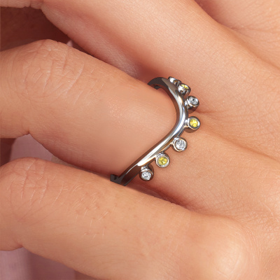 Cette bague superposée Drop B forgée en or blanc 14 Carat est sertie d'un saphir jaune. Cette bague forgée en or blanc, nommée Drop B, complète votre collection de bagues. Comme son nom l'indique, il s'agit d'une bague superposée qui peut être placée à côté d'une autre bague superposée sur le même doigt. Cela vous permet d'affihors de prix magnifiquement votre propre style. Une bague est également liée à des souvenirs, par exemple à une personne spéciale ou à un moment que vous ne voulez pas oublier. Lors d'un anniversaire de mariage, on choisit souvent une bague à porter à côté de l'alliance. Mais cette bague peut aussi être utilisée comme accessoire de mode stylé, et cette bague superposée beaux s’ajoute à celle de vos autres bagues. Votre bague superposée personnelle Drop B que vous vous créez est fabriquée avec amour et passion par nos orfèvres. Préféreriez-vous une option autre que la bague en or blanc Drop B présentée ici ? Vous avez alors diverses options possibles via le configurateur. Si vous n'êtes pas complètement sûr(e), nous serons ravis de vous conseiller !En combinant les dernières techniques modernes, associées à une fabrication ancienne, nous sommes en mesure de fabriquer nos bagues dans notre propre studio. Chaque bijou est fabriqué sur commande. Ceci est avantageux car nous sommes en mesure de vous proposer un prix que vous ne trouverez nulle part ailleurs.Pour vous faciliter la tâche, vous pouvez facilement nous retourner tout bijou commandé dans les 30 jours suivant la livraison. Avez-vous des questions à propos de la création de votre bague beaux Drop B ? Pas de problème. Contactez-nous et notre équipe de créateurs de bijoux vous aidera pour les étapes suivantes.