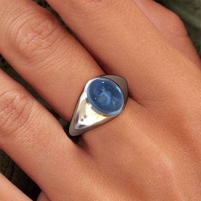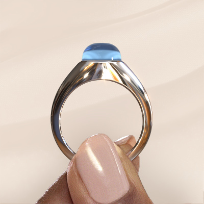 Sur la photo, vous pouvez voir la bague forgée en platine Zaza avec un cabochon topaze bleue. Cabochon signifie que le topaze bleue est d'abord affûté en une forme spécifique, telle que la forme d'une goutte, d'un cœur ou une forme cabochon ovale. Puis que des couches sont coupées du haut de la pierre jusqu'à ce que la pierre ait une belle forme convexe. Un bijou avec une pierre précieuse taillée en cabochon est magnifique, attire élégamment tous les regards et correspond parfaitement à un style design et plus encore à un style vintage. Votre bague 1 pierre est finalisée dans les moindres détails par nos orfèvres jusqu'à la création de votre bague unique, dans laquelle le topaze bleue cabochon prend tout son sens. Une bague sur mesure design et gracieuse est le cadeau parfait ! De nouveaux designs exquis sont ajoutés quotidiennement par notre équipe d'orfèvres passionnés. Et chaque design peut être personnalisé. Personnalisez simplement les métaux précieux et la couleur des pierres précieuses qui seront utilisées, par exemple. Cela rendra votre design de bague design Zaza vraiment unique ! Vous pouvez également graver votre bague. DiamondsByMe se fera un plaisir de le faire pour vous ! Nos orfèvres ne fabriqueront votre bague qu'une fois que vous l'aurez commandée. Nous ne faisons pas de stock. L'avantage de cela est que nous n'avons pas à inclure les frais de stockage dans nos prix, et nous pouvons donc vous offrir des bijoux à un prix très bas.Pour vous faciliter la tâche, vous pouvez facilement nous retourner tout bijou commandé dans les 30 jours suivant la livraison. Vous pouvez bien entendu toujours nous contacter si vous avez besoin de notre aide pour créer votre bague personnelle Zaza 1 pierre !
