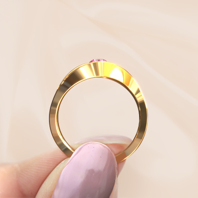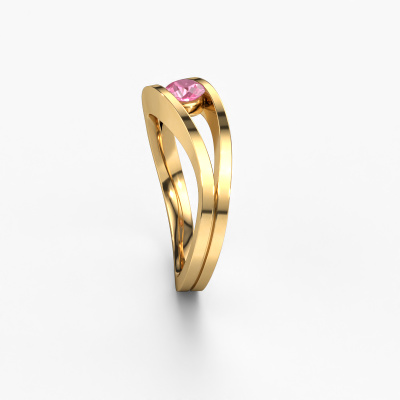 Sigrid 1 est le nom que nous avons donné à cette bague. Cette bague forgée en or jaune 14 Carat est sertie d'un saphir rose. Vous recherchez une Bague forgée en or jaune unique et avec un look modernes ? Voici donc une belle bague que vous pouvez aussi ajuster à votre goût. Parfait donc pour une femmes contemporaine et modernes ! Un magnifique saphir rose est serti dans cette bague torsadée est-ouest. Celui-ci est sélectionné avec soin, car seules les plus belles pierres précieuses de votre bague peuvent la faire briller. Notre orfèvre fabrique votre bague dans notre propre atelier et place le saphir rose dans l'anneau avec une précision extrême. Donc, il est travaillé et poli jusqu'à ce que le résultat soit visible : la bague parfaite ! En utilisant nos techniques modernes, nous sommes en mesure de concevoir et de personnaliser les bijoux de la plus haute qualité avec le plus grand soin pour vous. Nos bagues ont toujours un prix inférieur de 30% à celles des autres bijoutiers. Nous fabriquons des bagues à la commande afin de ne pas avoir à garder un stock important. Si vous avez un certain budget, nous serons ravis de vous conseiller tout en le respectant.Notre équipe de designers talentueux et passionnés ajoute chaque jour de nouveaux modèles bagues à notre collection en ligne. Notre objectif est de pouvoir vous offrir une grande variété de bijoux. N'hésitez pas à demander un devis si vous avez des souhaits spécifiques pour votre bague. Nous garantissons de vous faire une offre que vous ne pourrez pas refuser.Pour vous faciliter la tâche, vous pouvez facilement nous retourner tout bijou commandé dans les 30 jours suivant la livraison.Nous sommes curieux de savoir comment vous allez personnaliser votre bague Sigrid 1. Si quelque chose ne vous semble pas tout à fait clair, vous pouvez toujours nous contacter. Nous serons heureux de vous aider !