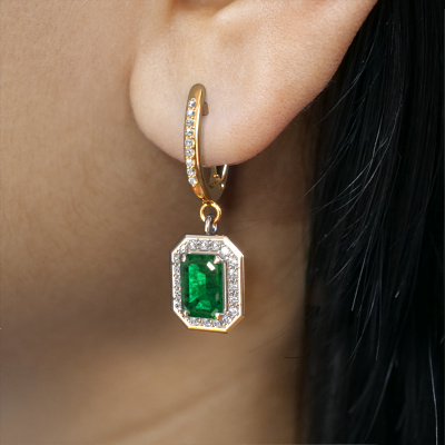 Chaque femme peut choisir d’attirer les regards grâce à une paire de pendants d'oreilles uniques ? Chez DiamondsByMe, nous créons des bijoux exclusives et larges, et nous utilisons les meilleurs métaux précieux et les meilleures pierres précieuses. Ces pendants d'oreilles uniques forgée en or blanc sont un exemple de véritable savoir-faire artisanal ! Tous les petits détails ont été fabriqués avec beaucoup de patience et de passion par notre orfèvre. Ce métier nécessite un œil expert et une main habile pour assembler cette pendant d'oreille avec la plus grande précision. Et c'est précisément ce qui enthousiasme nos orfèvres ! Les plus beaux émeraudes sont sertis de manière large, de telle sorte qu'ils soient encore plus spectaculaires. Cela donne aux pendants d'oreilles un attrait supplémentaire. Ci-dessus sont des pendants d'oreilles Dodie 2 forgées en or blanc et serties d'un emeraude taille émeraude. Les Dodie 2 sont fabriquées spécialement pour vous par nos maîtres orfèvres dans notre propre atelier.. Que pensez-vous de ces pendants d'oreilles exclusives en or blanc? Personnalisez simplement ces pendants d'oreilles Dodie 2 à l'aide de notre outil en ligne. Par la suite, vos halo pendants d'oreilles Dodie 2 seront confectionnées à la main par nos orfèvres. Les métaux précieux et les pierres précieuses peuvent être personnalisés à votre guise. Avez-vous des préférences spécifiques qui ne sont pas disponibles dans notre outil en ligne ? N'hésitez pas à nous contacter. Nous personnaliserons vos pendants d'oreilles exclusives selon vos goûts.Devez-vous respecter un certain budget ? N'hésitez pas à nous contacter, nous serons heureux de vous conseiller sur toutes les possibilités. Dans tous les cas, nous offrons toutes les pendants d'oreilles à un prix que vous ne trouverez nulle part ailleurs, car nous ne fabriquerons la bague uniquement lorsque vous la commanderez. Cela nous permet de vous donner la garantie du meilleur prix.Pour vous faciliter la tâche, vous pouvez facilement nous retourner tout bijou commandé dans les 30 jours suivant la livraison. Avez-vous des questions, ou aimeriez-vous avoir de l’aide pour assembler vos pendants d'oreilles Halo Dodie 2 ? N'hésitez pas à contacter notre équipe d'employés passionnés. Nous serons heureux de vous aider !