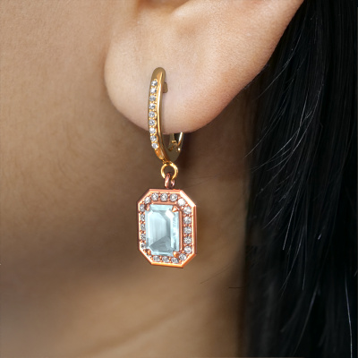 Chaque femme peut choisir d’attirer les regards grâce à une paire de pendants d'oreilles uniques ? Chez DiamondsByMe, nous créons des bijoux exclusives et larges, et nous utilisons les meilleurs métaux précieux et les meilleures pierres précieuses. Ces pendants d'oreilles uniques forgée en or rose sont un exemple de véritable savoir-faire artisanal ! Tous les petits détails ont été fabriqués avec beaucoup de patience et de passion par notre orfèvre. Ce métier nécessite un œil expert et une main habile pour assembler cette pendant d'oreille avec la plus grande précision. Et c'est précisément ce qui enthousiasme nos orfèvres ! Les plus beaux aigues-marines sont sertis de manière large, de telle sorte qu'ils soient encore plus spectaculaires. Cela donne aux pendants d'oreilles un attrait supplémentaire. Ci-dessus sont des pendants d'oreilles Dodie 2 forgées en or rose et serties d'un aigue-marine taille émeraude. Les Dodie 2 sont fabriquées spécialement pour vous par nos maîtres orfèvres dans notre propre atelier.. Que pensez-vous de ces pendants d'oreilles exclusives en or rose? Personnalisez simplement ces pendants d'oreilles Dodie 2 à l'aide de notre outil en ligne. Par la suite, vos halo pendants d'oreilles Dodie 2 seront confectionnées à la main par nos orfèvres. Les métaux précieux et les pierres précieuses peuvent être personnalisés à votre guise. Avez-vous des préférences spécifiques qui ne sont pas disponibles dans notre outil en ligne ? N'hésitez pas à nous contacter. Nous personnaliserons vos pendants d'oreilles exclusives selon vos goûts.Devez-vous respecter un certain budget ? N'hésitez pas à nous contacter, nous serons heureux de vous conseiller sur toutes les possibilités. Dans tous les cas, nous offrons toutes les pendants d'oreilles à un prix que vous ne trouverez nulle part ailleurs, car nous ne fabriquerons la bague uniquement lorsque vous la commanderez. Cela nous permet de vous donner la garantie du meilleur prix.Pour vous faciliter la tâche, vous pouvez facilement nous retourner tout bijou commandé dans les 30 jours suivant la livraison. Avez-vous des questions, ou aimeriez-vous avoir de l’aide pour assembler vos pendants d'oreilles Halo Dodie 2 ? N'hésitez pas à contacter notre équipe d'employés passionnés. Nous serons heureux de vous aider !