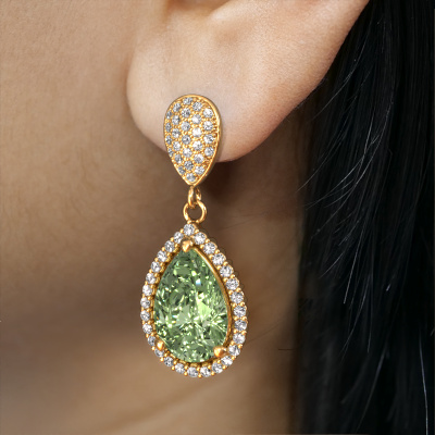 Chaque femme peut choisir d’attirer les regards grâce à une paire de pendants d'oreilles uniques ? Chez DiamondsByMe, nous créons des bijoux exclusives et larges, et nous utilisons les meilleurs métaux précieux et les meilleures pierres précieuses. Ces pendants d'oreilles uniques forgée en or jaune sont un exemple de véritable savoir-faire artisanal ! Tous les petits détails ont été fabriqués avec beaucoup de patience et de passion par notre orfèvre. Ce métier nécessite un œil expert et une main habile pour assembler cette pendant d'oreille avec la plus grande précision. Et c'est précisément ce qui enthousiasme nos orfèvres ! Les plus beaux diamants synthétiques vert sont sertis de manière large, de telle sorte qu'ils soient encore plus spectaculaires. Cela donne aux pendants d'oreilles un attrait supplémentaire. Ci-dessus sont des pendants d'oreilles Tilly per 2 forgées en or jaune et serties d'un diamants synthétiques vert poire. Les Tilly per 2 sont fabriquées par une équipe d'orfèvres et de designers passionnés. Cela permettra à cette pièce unique d'attirer tous les regards.. Nos orfèvres créent vos pendants d'oreilles, personnalisées à votre goût, avec la plus grande attention. Les pendants d'oreilles en or blanc, illustrées ici, peuvent être personnalisées à l'aide de notre outil en ligne. Choisissez vos propres pierres précieuses pour représenter votre amour.Devez-vous respecter un certain budget ? N'hésitez pas à nous contacter, nous serons heureux de vous conseiller sur toutes les possibilités. Dans tous les cas, nous offrons toutes les pendants d'oreilles à un prix que vous ne trouverez nulle part ailleurs, car nous ne fabriquerons la bague uniquement lorsque vous la commanderez. Cela nous permet de vous donner la garantie du meilleur prix.Pour vous faciliter la tâche, vous pouvez facilement nous retourner tout bijou commandé dans les 30 jours suivant la livraison. Avez-vous des questions, ou aimeriez-vous avoir de l’aide pour assembler vos pendants d'oreilles Spéciale Tilly per 2 ? N'hésitez pas à contacter notre équipe d'employés passionnés. Nous serons heureux de vous aider !