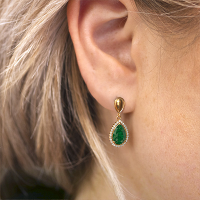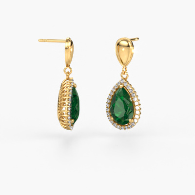 Chaque femme peut choisir d’attirer les regards grâce à une paire de pendants d'oreilles uniques ? Chez DiamondsByMe, nous créons des bijoux exclusives et larges, et nous utilisons les meilleurs métaux précieux et les meilleures pierres précieuses. Ces pendants d'oreilles uniques forgée en or jaune sont un exemple de véritable savoir-faire artisanal ! Tous les petits détails ont été fabriqués avec beaucoup de patience et de passion par notre orfèvre. Ce métier nécessite un œil expert et une main habile pour assembler cette pendant d'oreille avec la plus grande précision. Et c'est précisément ce qui enthousiasme nos orfèvres ! Les plus beaux émeraudes sont sertis de manière large, de telle sorte qu'ils soient encore plus spectaculaires. Cela donne aux pendants d'oreilles un attrait supplémentaire. Ci-dessus sont des pendants d'oreilles Tilly per 1 forgées en or jaune et serties d'un emeraude poire. Les Tilly per 1 sont fabriquées spécialement pour vous par nos maîtres orfèvres dans notre propre atelier.. Dès que vous aurez fini de designer vos pendants d'oreilles exclusives à l'aide de notre outil en ligne, nos orfèvres commenceront leur processus créatif de fabrication de vos boucles d'oreilles. Cela se fera avec passion et soin, conformément à l'artisanat ancien. En plus de cela, nos bijoux sont faits à partir de matériaux honnêtes. Si vous souhaitez apporter des modifications spécifiques à vos pendants d'oreilles Tilly per 1, qui ne sont pas disponibles dans notre outil en ligne, n'hésitez pas à contacter nos designers experts.Puisque nous concevons et livrons nos propres pendants d'oreilles, nous sommes en mesure de vous proposer pendants d'oreilles à un prix que vous ne pourrez pas trouver ailleurs. Pendants d'oreilles est fabriquée sur commande, ce qui permet d'éviter les excédents de matériel et nous permet de vous proposer une superbe offre de prix. Nous comprenons qu'acheter votre pendants d'oreilles en ligne soit un risque, mais nous vous assistons volontiers dans le processus de conception, en tenant compte de votre budget.Pour vous faciliter la tâche, vous pouvez facilement nous retourner tout bijou commandé dans les 30 jours suivant la livraison. Avez-vous des questions, ou aimeriez-vous avoir de l’aide pour assembler vos pendants d'oreilles Goutte Tilly per 1 ? N'hésitez pas à contacter notre équipe d'employés passionnés. Nous serons heureux de vous aider !
