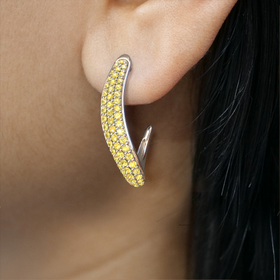 Comment décririez-vous votre style ? Aimez-vous quelque chose d'un peu différent que d'habitude ? Ces boucles d'oreilles modernes forgée en or blanc sont uniques et conçues par nos créateurs de bijoux. Un saphir jaune est serti dans ces boucles d'oreilles modernes. Ces saphirs jaunes ont été sélectionnés avec soin, car nous pensons que seules les plus belles pierres précieuses peuvent briller sur vos boucles d'oreilles, n'est-ce pas ? Les Dina 2 sont uniques, car vous pouvez concevoir ces boucles d'oreilles en fonction de vos souhaits.. Que pensez-vous de ces boucles d'oreilles modernes en or blanc? Personnalisez simplement ces boucles d'oreilles Dina 2 à l'aide de notre outil en ligne. Par la suite, vos élégants boucles d'oreilles Dina 2 seront confectionnées à la main par nos orfèvres. Les métaux précieux et les pierres précieuses peuvent être personnalisés à votre guise. Avez-vous des préférences spécifiques qui ne sont pas disponibles dans notre outil en ligne ? N'hésitez pas à nous contacter. Nous personnaliserons vos boucles d'oreilles modernes selon vos goûts.Avec beaucoup de passion, nos orfèvres se mettent au travail avec votre boucles d'oreilles dans notre atelier dès que vous l'avez commandée. Parce que nous ne gardons pas de bijoux en stock, nous ne devons pas inclure le coût de l'inventaire dans le prix. Et cela se reflète dans le prix de nos bijoux ! Nous sommes heureux de vous donner la garantie du meilleur prix.Pour vous faciliter la tâche, vous pouvez facilement nous retourner tout bijou commandé dans les 30 jours suivant la livraison. Êtes-vous convaincue et souhaitez-vous créer vos propres boucles d'oreilles élégant Dina 2 ? Mais avez-vous encore des questions ? N'hésitez pas à contacter notre équipe de professionnels passionnés !