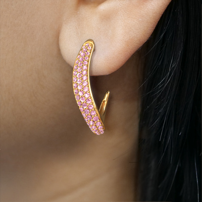 Comment décririez-vous votre style ? Aimez-vous quelque chose d'un peu différent que d'habitude ? Ces boucles d'oreilles modernes forgée en or jaune sont uniques et conçues par nos créateurs de bijoux. Un saphir rose est serti dans ces boucles d'oreilles modernes. Ces saphirs roses ont été sélectionnés avec soin, car nous pensons que seules les plus belles pierres précieuses peuvent briller sur vos boucles d'oreilles, n'est-ce pas ? Les Dina 2 sont uniques, car vous pouvez concevoir ces boucles d'oreilles en fonction de vos souhaits.. Que pensez-vous de ces boucles d'oreilles modernes en or jaune? Personnalisez simplement ces boucles d'oreilles Dina 2 à l'aide de notre outil en ligne. Par la suite, vos élégants boucles d'oreilles Dina 2 seront confectionnées à la main par nos orfèvres. Les métaux précieux et les pierres précieuses peuvent être personnalisés à votre guise. Avez-vous des préférences spécifiques qui ne sont pas disponibles dans notre outil en ligne ? N'hésitez pas à nous contacter. Nous personnaliserons vos boucles d'oreilles modernes selon vos goûts.Avec beaucoup de passion, nos orfèvres se mettent au travail avec votre boucles d'oreilles dans notre atelier dès que vous l'avez commandée. Parce que nous ne gardons pas de bijoux en stock, nous ne devons pas inclure le coût de l'inventaire dans le prix. Et cela se reflète dans le prix de nos bijoux ! Nous sommes heureux de vous donner la garantie du meilleur prix.Pour vous faciliter la tâche, vous pouvez facilement nous retourner tout bijou commandé dans les 30 jours suivant la livraison. Êtes-vous convaincue et souhaitez-vous créer vos propres boucles d'oreilles élégant Dina 2 ? Mais avez-vous encore des questions ? N'hésitez pas à contacter notre équipe de professionnels passionnés !