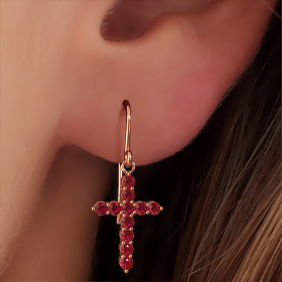 Ici, vous pouvez voir les pendants d'oreilles fantaisie Cross. Ces pendants d'oreilles sont serties d'un magnifique rubis ronds. Ces rubis sont soigneusement sélectionnés et placés dans vos pendants d'oreilles avec la plus grande précision afin que la lumière puisse être le mieux distribuée dans le rubis. Selon notre avis, ces symboliques pendants d'oreilles forgées en or rose prennent tout leur sens lorsque des pierres précieuses de couleur sont serties. Mais bien sûr, le choix est le vôtre. Les Cross sont fabriquées spécialement pour vous par nos maîtres orfèvres dans notre propre atelier.. La beauté de ces pendants d'oreilles symboliques réside dans le fait que vous pouvez les composer vous-même. Votre style, votre choix, vos pendants d'oreilles. De plus, vos pendants d'oreilles fantaisie en or rose sont faites à la main, avec des matériaux issus du commerce équitable !sont fabriquées spécialement pour vous par nos maîtres orfèvres dans notre propre atelier. Avec beaucoup de passion, nos orfèvres se mettent au travail avec votre pendants d'oreilles dans notre atelier dès que vous l'avez commandée. Parce que nous ne gardons pas de bijoux en stock, nous ne devons pas inclure le coût de l'inventaire dans le prix. Et cela se reflète dans le prix de nos bijoux ! Nous sommes heureux de vous donner la garantie du meilleur prix.Pour vous faciliter la tâche, vous pouvez facilement nous retourner tout bijou commandé dans les 30 jours suivant la livraison.
