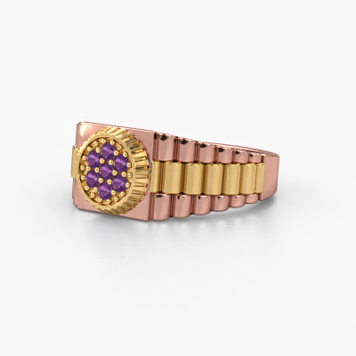 Jeder kennt das Design dieser bekannten Uhrenmarke. Mit 14 Karat Roségold Verbindungen ist dieser massive Roségold Nout Herrenring perfekt für trendige, erfolgreiche Männer geeignet. Ein Mann, der sich mit einem markanten Herrenring mit 2 mm Amethyst schmücken möchte. Zeigen Sie allen, woraus Sie gemacht sind!Unsere Goldschmiede kreieren Ihren individuellen Herrenring leidenschaftlich, mit größter Sorgfalt und nach Ihren Wünschen. Das Roségold Herrenring, wie hier abgebildet, kann mit unserem Online-Tool individuell angepasst werden. Bitte fragen Sie unsere Schmuckdesigner um Hilfe, wenn Sie Änderungen wünschen, die in unserem Online-Tool nicht verfügbar sind. Gerne beantworten wir Ihnen alle offenen Fragen.Unsere Online-Kollektion wird täglich um neue Schmuckdesigns ergänzt. Unser Team von leidenschaftlichen Designern ist bemüht, außergewöhnliche und vielfältige Designs zu kreieren. Haben Sie einen Ring gesehen, der Ihnen gefällt? Setzen Sie sich mit uns in Verbindung. Basierend auf einem guten Preis/Leistungsverhältnis machen wir Ihnen ein Angebot, das Sie nicht ablehnen können!Mit unserer modernen Technik können wir Schmuckstücke von höchster Qualität mit größter Sorgfalt für Sie entwerfen und anpassen. Unsere Ringe sind immer um 30 Prozent günstiger als bei anderen Juwelieren. Wir fertigen Ringe auf Bestellung, also müssen wir keine großen Lager unterhalten. Wenn Sie ein bestimmtes Budget haben, beraten wir Sie gerne entsprechend.Um es einfacher zu machen, bieten wir eine kostenlose 30-tägige Rücksendung.