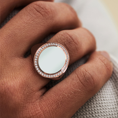 Der ovale Adam 5 Siegelring mit 15x13 mm oval form grüner Lagenstein Oberfläche, wie oben gezeigt, ist voll von Tradition. Üblicherweise wurde der Siegelring vom Vater an den Sohn weitergegeben. Beginnen Sie Ihre eigene Tradition mit diesem ovale, Roségold Siegelring. Wir würden uns auch sehr freuen, Ihren Ring mit einem Monogramm oder einem Familienwappen gravieren zu dürfen. Bitte sehen Sie sich unsere Datenbank für weitere Anfragen und Optionen an. Sie können die Datenbank am unteren Rand dieser Seite finden. Beginnen Sie eine neue Tradition mit dem exklusive Roségold Adam 5 Siegelring. Der Diamanten Adam 5 Siegelring, wie hier abgebildet, kann ganz nach Ihren Wünschen gestaltet werden. Unser Online-Tool bietet viele verschiedene Möglichkeiten. Bitte kontaktieren Sie uns, wenn Sie Änderungen an Ihrem Adam 5 Siegelring wünschen, die in unserem Online-Tool nicht verfügbar sind.Unsere talentierten, leidenschaftlichen Designer fügen unserer Online-Kollektion täglich neue Designs hinzu. Zusammen versuchen sie, eine vielfältige Kollektion feinster Schmuckstücke zu erstellen. Wenn Sie es vorziehen, einen Ring nach Ihrem eigenen Entwurf zu machen, können Sie gerne ein Angebot anfordern. Wir machen Ihnen ein großartiges Angebot, basierend auf Qualität und Preis.Nachdem Sie Ihre Bestellung aufgegeben haben, beginnen unsere Goldschmiede mit dem kreativen Prozess der Herstellung Ihres Adam 5 Ring. Wir haben keine Lager. Das ist vorteilhaft, da diese Kosten nicht an Sie weitergegeben werden. Daher sind wir in der Lage, Schmuck zu außergewöhnlich niedrigen Preisen anzubieten.Um es einfacher zu machen, bieten wir eine kostenlose 30-tägige Rücksendung.