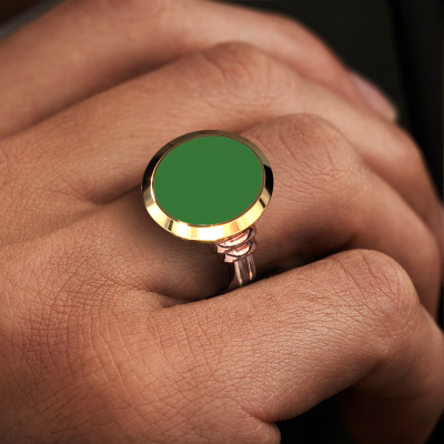 Der ovale Jake 4 Siegelring mit 15x13 mm oval form grüne Emaille Oberfläche, wie oben gezeigt, ist voll von Tradition. Üblicherweise wurde der Siegelring vom Vater an den Sohn weitergegeben. Beginnen Sie Ihre eigene Tradition mit diesem ovale, Roségold Siegelring. Wir würden uns auch sehr freuen, Ihren Ring mit einem Monogramm oder einem Familienwappen gravieren zu dürfen. Bitte sehen Sie sich unsere Datenbank für weitere Anfragen und Optionen an. Sie können die Datenbank am unteren Rand dieser Seite finden. Beginnen Sie eine neue Tradition mit dem moderne Roségold Jake 4 Siegelring. Passen Sie Ihr eigenes, Luxus Jake 4 Siegelring an, das dann von unseren Goldschmieden mit großer Leidenschaft angefertigt wird. Bevorzugen Sie eine andere Option, als hier beim Roségold Jake 4 Siegelring? Dann bieten unsere Online-Tools verschiedene Möglichkeiten. Sie können uns jederzeit gerne um Hilfe fragen, wenn Sie nicht weiterkommen. Gerne beantworten wir Ihnen alle offenen Fragen!
