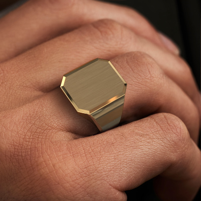 Für jeden Ringträger, der gerade Formen mag, ohne zu viel Schnörkel, bieten wir den flache, Gold Abel 5 geradlinig Siegelring. Dieser glattflächige Ring besticht durch sein enges, stilvolles Design und ist perfekt für den zeitgemäßen, selbstbewussten Mann. Möchten Sie eine Gravur mit einem Monogramm oder Familienwappen? Bitte sehen Sie sich unsere Datenbank für weitere Anfragen und Optionen an. Die verschiedenen Abteilungen innerhalb der Datenbank finden Sie am unteren Rand dieser Seite. Unsere Goldschmiede kreieren Ihren individuellen Siegelring leidenschaftlich, mit größter Sorgfalt und nach Ihren Wünschen. Das Gold Siegelring, wie hier abgebildet, kann mit unserem Online-Tool individuell angepasst werden. Bitte fragen Sie unsere Schmuckdesigner um Hilfe, wenn Sie Änderungen wünschen, die in unserem Online-Tool nicht verfügbar sind. Gerne beantworten wir Ihnen alle offenen Fragen.Unsere Online-Kollektion wird täglich um neue Schmuckdesigns ergänzt. Unser Team von leidenschaftlichen Designern ist bemüht, außergewöhnliche und vielfältige Designs zu kreieren. Haben Sie einen Ring gesehen, der Ihnen gefällt? Setzen Sie sich mit uns in Verbindung. Basierend auf einem guten Preis/Leistungsverhältnis machen wir Ihnen ein Angebot, das Sie nicht ablehnen können!Haben Sie ein bestimmtes Budget? Sie können uns gerne kontaktieren, damit wir Ihre Optionen besprechen können. Wir bieten unsere Ringe zum garantiert besten Preis, denn wir fertigen sie auf Bestellung. Solche Preise finden Sie nirgendwo anders!Um es einfacher zu machen, bieten wir eine kostenlose 30-tägige Rücksendung.
