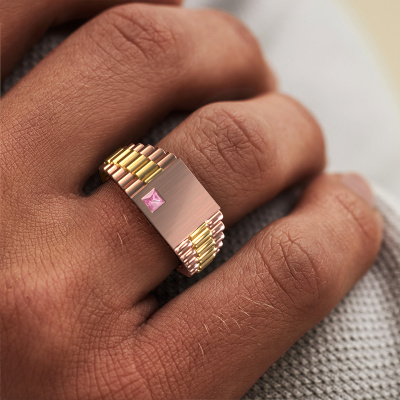 Jeder kennt das Design dieser bekannten Uhrenmarke. Mit 14 Karat Roségold Verbindungen ist dieser massive Roségold Pelle Herrenring perfekt für trendige, erfolgreiche Männer geeignet. Ein Mann, der sich mit einem markanten Herrenring mit 3 mm Pink Saphir schmücken möchte. Zeigen Sie allen, woraus Sie gemacht sind!Sobald Sie Ihren Pelle Herrenring mit unserem Online-Tool fertiggestellt haben, beginnen unsere Goldschmiede mit der kreativen Anfertigung Ihres Ringes. Dieser wird mit Leidenschaft und Sorgfalt nach alter Handwerkskunst gefertigt. Darüber arbeiten wir mit ehrlichen Edelsteinen. Einfach online mit unserem Online-Tool anpassen, wenn Sie Änderungen wünschen. Wenn Sie spezielle Änderungen an Ihrem Pelle Herrenring vornehmen möchten, die in unserem Online-Tool nicht verfügbar sind, wenden Sie sich bitte an unsere Experten.Unser Team von talentierten, leidenschaftlichen Designern fügt unserer Online-Kollektion täglich neue Ringe-Designs hinzu. Unser Ziel dabei ist es, Ihnen eine große Vielfalt an Schmuckstücken anbieten zu können. Bitte zögern Sie nicht, ein Angebot anzufordern, wenn Sie spezielle Wünsche für Ihren Ring haben. Wir garantieren Ihnen ein Angebot, das Sie nicht ablehnen können.Nachdem Sie Ihre Bestellung aufgegeben haben, beginnen unsere Goldschmiede mit dem kreativen Prozess der Herstellung Ihres Pelle Ring. Wir haben keine Lager. Das ist vorteilhaft, da diese Kosten nicht an Sie weitergegeben werden. Daher sind wir in der Lage, Schmuck zu außergewöhnlich niedrigen Preisen anzubieten.Um es einfacher zu machen, bieten wir eine kostenlose 30-tägige Rücksendung.