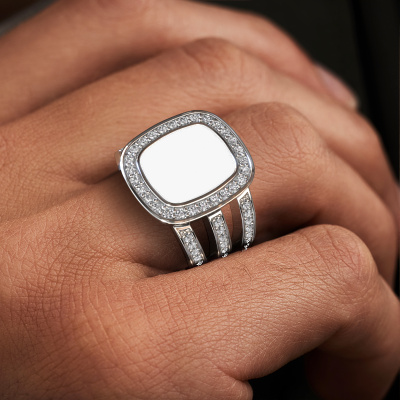 Der breite Tijn Siegelring mit 13x11 mm rechteck antik weißer Emaille Oberfläche, wie oben gezeigt, ist voll von Tradition. Üblicherweise wurde der Siegelring vom Vater an den Sohn weitergegeben. Beginnen Sie Ihre eigene Tradition mit diesem breite, Platin Siegelring. Wir würden uns auch sehr freuen, Ihren Ring mit einem Monogramm oder einem Familienwappen gravieren zu dürfen. Bitte sehen Sie sich unsere Datenbank für weitere Anfragen und Optionen an. Sie können die Datenbank am unteren Rand dieser Seite finden. Beginnen Sie eine neue Tradition mit dem exklusive Platin Tijn Siegelring. Der besondere Tijn Siegelring, wie hier abgebildet, kann ganz nach Ihren Wünschen gestaltet werden. Unser Online-Tool bietet viele verschiedene Möglichkeiten. Bitte kontaktieren Sie uns, wenn Sie Änderungen an Ihrem Tijn Siegelring wünschen, die in unserem Online-Tool nicht verfügbar sind.Unsere Online-Kollektion wird täglich um neue Schmuckdesigns ergänzt. Unser Team von leidenschaftlichen Designern ist bemüht, außergewöhnliche und vielfältige Designs zu kreieren. Haben Sie einen Ring gesehen, der Ihnen gefällt? Setzen Sie sich mit uns in Verbindung. Basierend auf einem guten Preis/Leistungsverhältnis machen wir Ihnen ein Angebot, das Sie nicht ablehnen können!Nachdem Sie Ihre Bestellung aufgegeben haben, beginnen unsere Goldschmiede mit dem kreativen Prozess der Herstellung Ihres Tijn Ring. Wir haben keine Lager. Das ist vorteilhaft, da diese Kosten nicht an Sie weitergegeben werden. Daher sind wir in der Lage, Schmuck zu außergewöhnlich niedrigen Preisen anzubieten.Um es einfacher zu machen, bieten wir eine kostenlose 30-tägige Rücksendung.